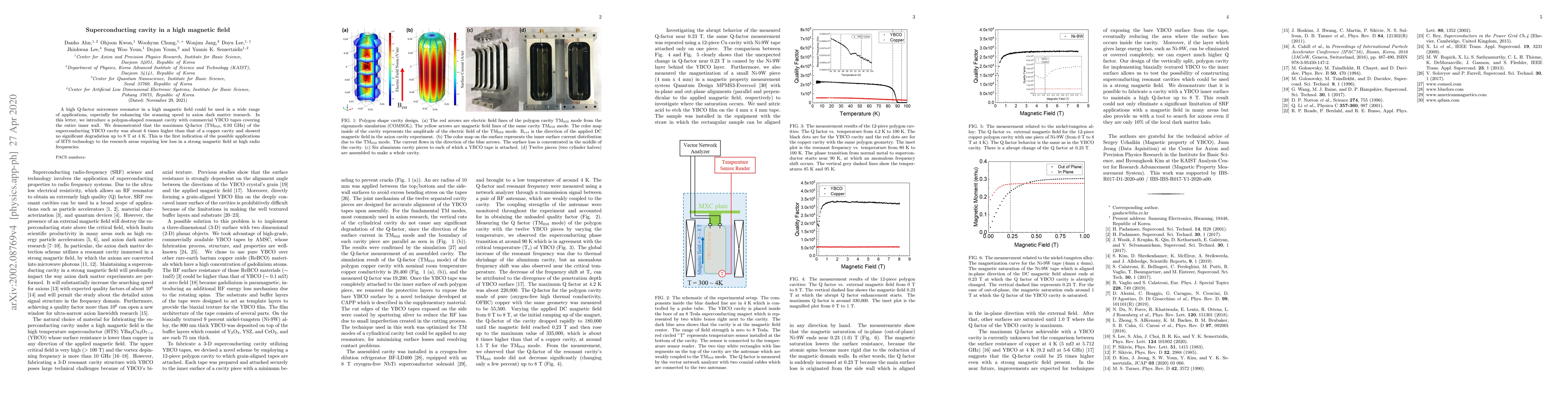 This paper presents a polygon-shaped superconducting cavity made from YBCO tapes that achieves a high Q-factor of 6 times greater than a copper cavity, demonstrating stability under 8 T magnetic fields at 4 K. This innovation suggests potential applications for enhancing scanning speeds in axion dark matter research.