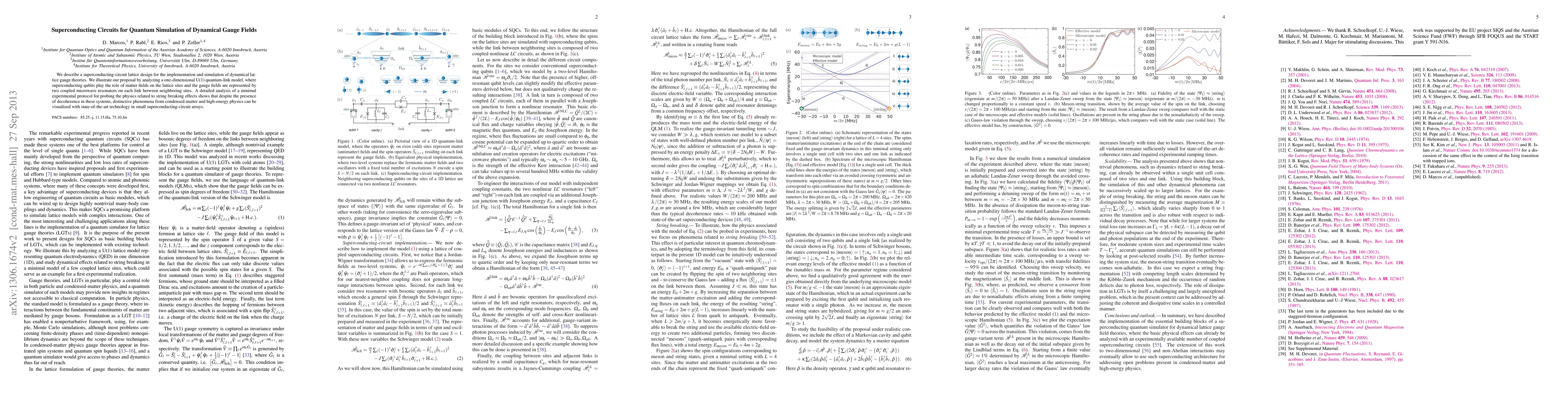 Researchers designed a superconducting circuit lattice to simulate dynamical gauge fields using quantum mechanics. They successfully visualized phenomena from both condensed-matter and high-energy physics in small arrays despite the presence of decoherence.
