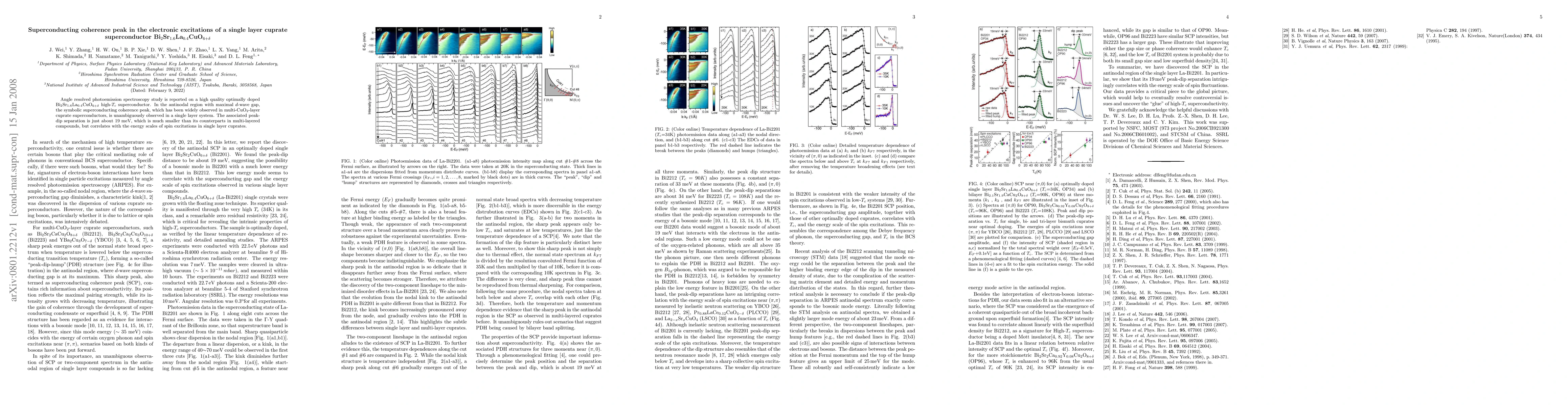 Researchers observed a superconducting coherence peak in a single layer cuprate superconductor using angle-resolved photoemission spectroscopy, a result previously seen in multi-layered compounds.
