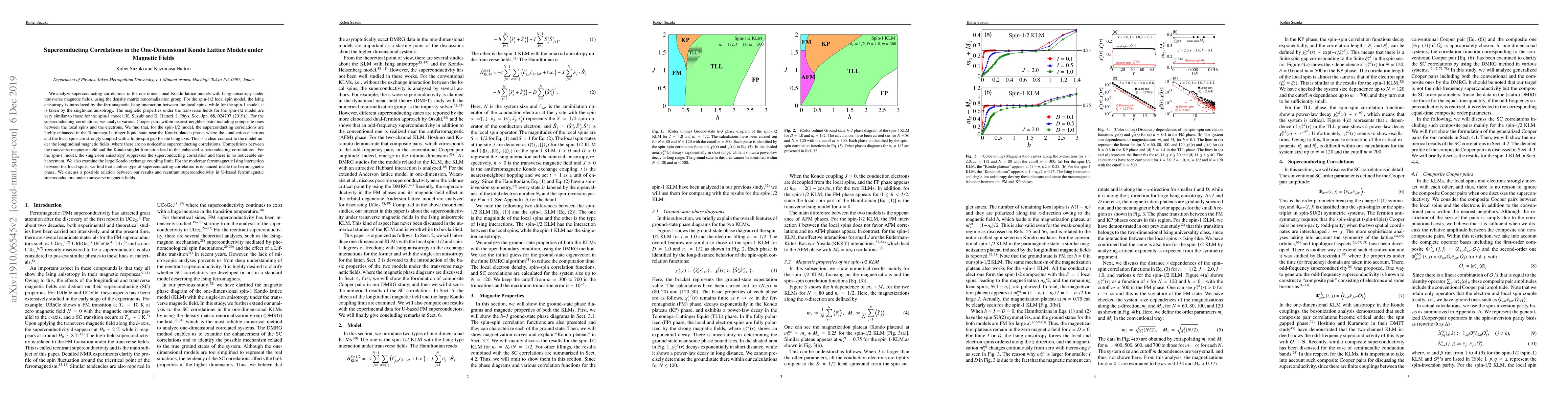 This paper investigates superconducting correlations in one-dimensional Kondo lattice models with Ising anisotropy under transverse magnetic fields, revealing enhanced superconducting correlations in the spin-1/2 model near the Kondo-plateau phase, contrasting with the spin-1 model where such enhancements are suppressed.