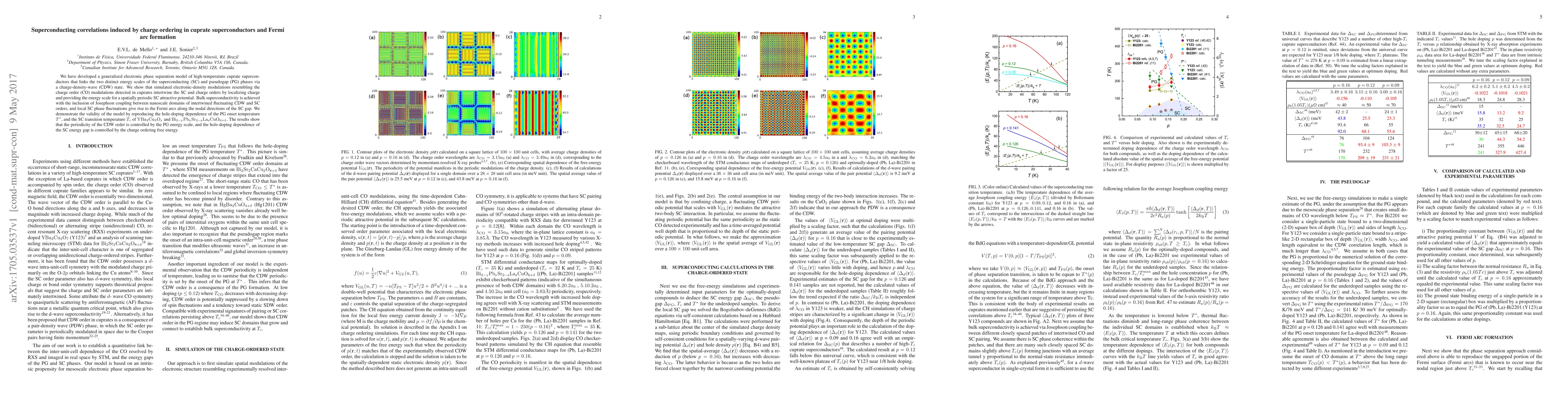 This paper proposes a model linking superconducting and pseudogap phases in cuprate superconductors through charge-density-wave states, showing that charge order induces superconductivity and forms Fermi arcs due to local phase fluctuations. The model accurately reproduces the doping dependence of pseudogap and superconducting transition temperatures in specific cuprate compounds.