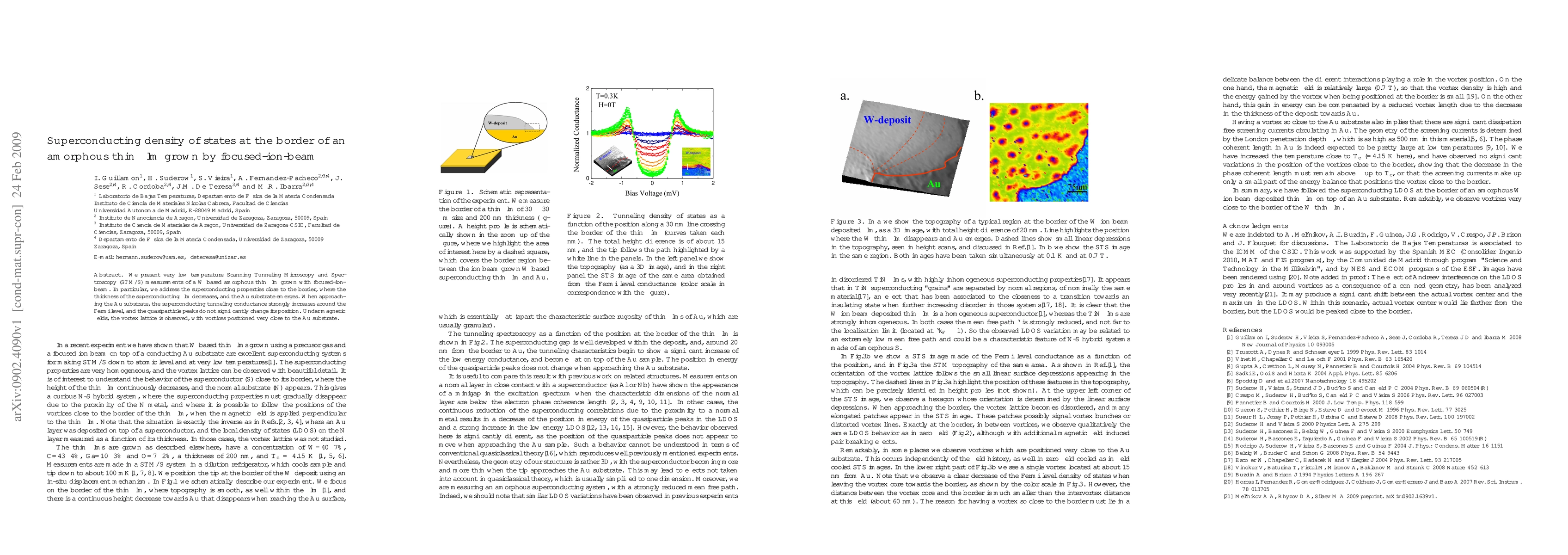 We present very low temperature Scanning Tunneling Microscopy and Spectroscopy (STM/S) measurements of a W based amorphous thin film grown with focused-ion-beam. In particular, we address the superconducting properties close to the border, where the thickness of the superconducting film decreases, and the Au substrate emerges. When approaching the Au substrate, the superconducting tunneling conductance strongly increases around the Fermi level, and the quasiparticle peaks do not significantly change its position. Under magnetic fields, the vortex lattice is observed, with vortices positioned very close to the Au substrate.