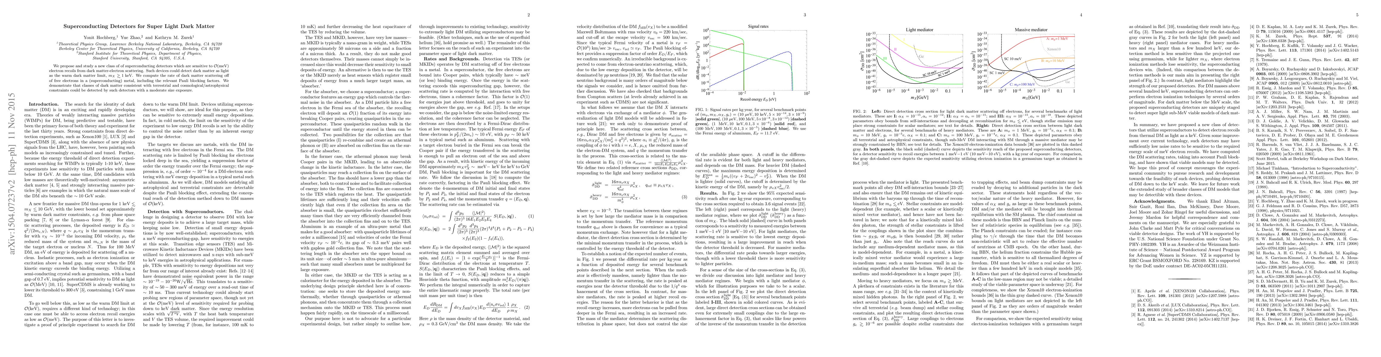 We propose and study a new class of superconducting detectors which are sensitive to O(meV) electron recoils from dark matter-electron scattering. Such devices could detect dark matter as light as the warm dark matter limit, mX > keV. We compute the rate of dark matter scattering off of free electrons in a (superconducting) metal, including the relevant Pauli blocking factors. We demonstrate that classes of dark matter consistent with terrestrial and cosmological/astrophysical constraints could be detected by such detectors with a moderate size exposure.