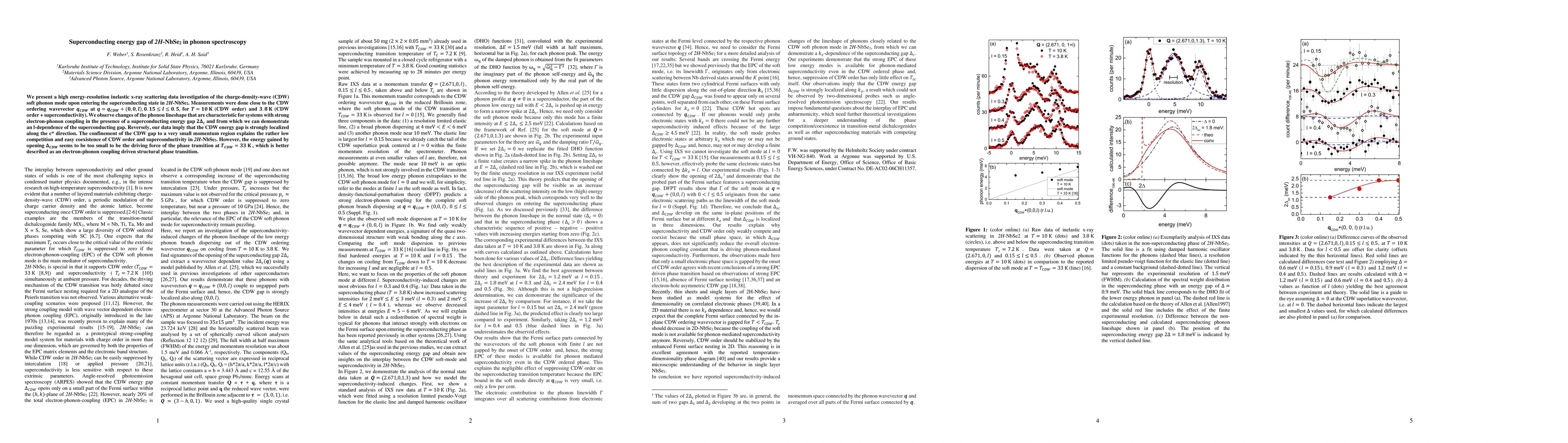 We present a high energy-resolution inelastic x-ray scattering data investigation of the charge-density-wave (CDW) soft phonon mode upon entering the superconducting state in $2H$-NbSe$_2$. Measurements were done close to the CDW ordering wavevector $\mathbf{q}_{CDW}$ at $\mathbf{q}=\mathbf{q}_{CDW}+(0,0,l)$,$0.15\leq l \leq 0.5$, for $T=10\,\rm{K}$ (CDW order) and $3.8\,\rm{K}$ (CDW order + superconductivity). We observe changes of the phonon lineshape that are characteristic for systems with strong electron-phonon coupling in the presence of a superconducting energy gap $2\Delta_c$ and from which we can demonstrate an $l$-dependence of the superconducting gap. Reversely, our data imply that the CDW energy gap is strongly localized along the $c^*$ direction. The confinement of the CDW gap to a very small momentum region explains the rather low competition and easy coexistence of CDW order and superconductivity in $2H$-NbSe$_2$. However, the energy gained by opening $\Delta_{CDW}$ seems to be too small to be the driving force of the phase transition at $T_{CDW}=33\,\rm{K}$ , which is better described as an electron-phonon coupling driven structural phase transition.