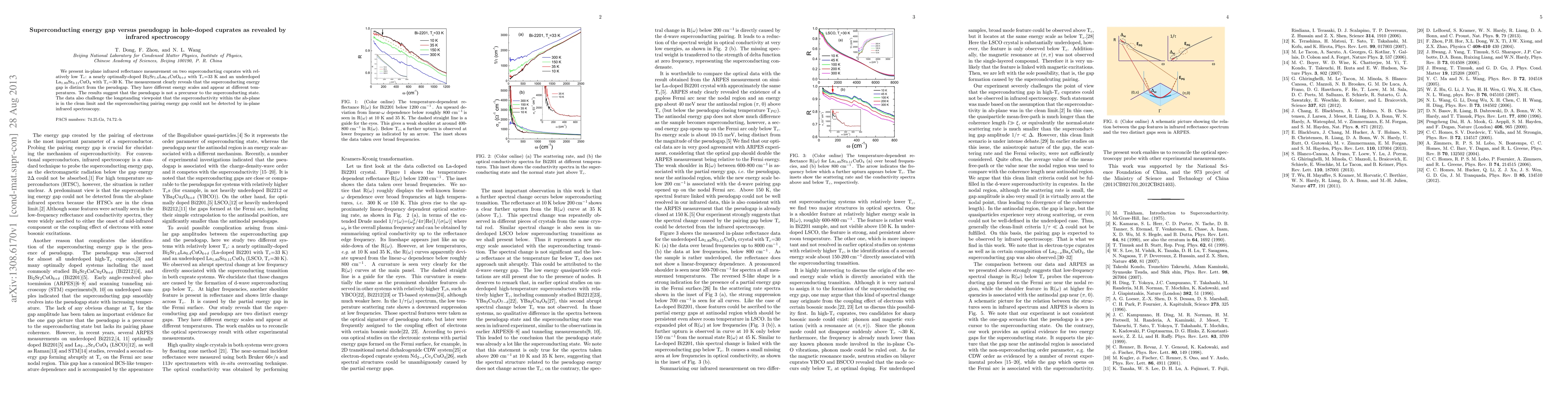 We present in-plane infrared reflectance measurement on two superconducting cuprates with relatively low T$_c$: a nearly optimally-doped Bi$_2$Sr$_{1.6}$La$_{0.4}$CuO$_{6+\delta}$ with T$_c$=33 K and an underdoped La$_{1.89}$Sr$_{0.11}$CuO$_4$ with T$_c$=30 K. The measurement clearly reveals that the superconducting energy gap is distinct from the pseudogap. They have different energy scales and appear at different temperatures. The results suggest that the pseudogap is not a precursor to the superconducting state. The data also challenge the longstanding viewpoint that the superconductivity within the ab-plane is in the clean limit and the superconducting pairing energy gap could not be detected by in-plane infrared spectroscopy.