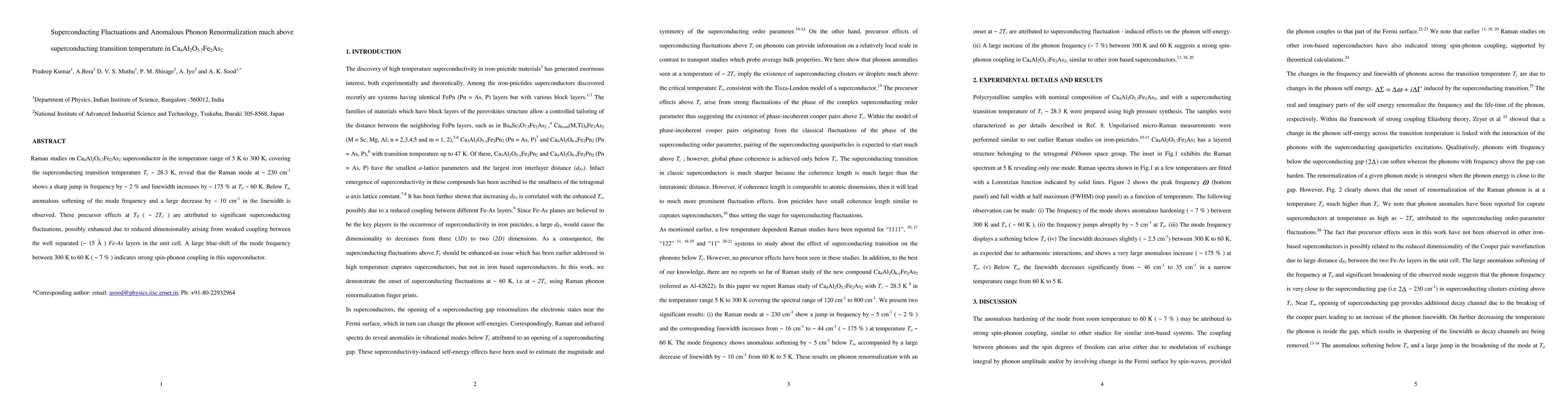 Researchers studied Ca4Al2O5.7Fe2As2 superconductor and found that certain Raman modes show increased frequency and linewidth above the superconducting transition temperature, indicating significant superconducting fluctuations.