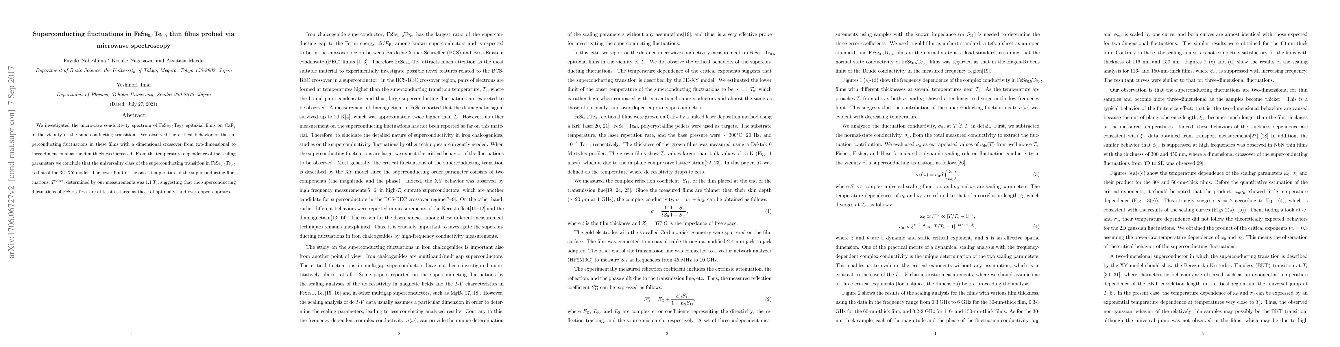 This study investigates the microwave conductivity of FeSe$_{0.5}$Te$_{0.5}$ thin films, revealing a dimensional crossover in superconducting fluctuations from 2D to 3D with increasing film thickness. The findings suggest the universality class of the superconducting transition aligns with the 3D-XY model, with fluctuations comparable to those in cuprates.