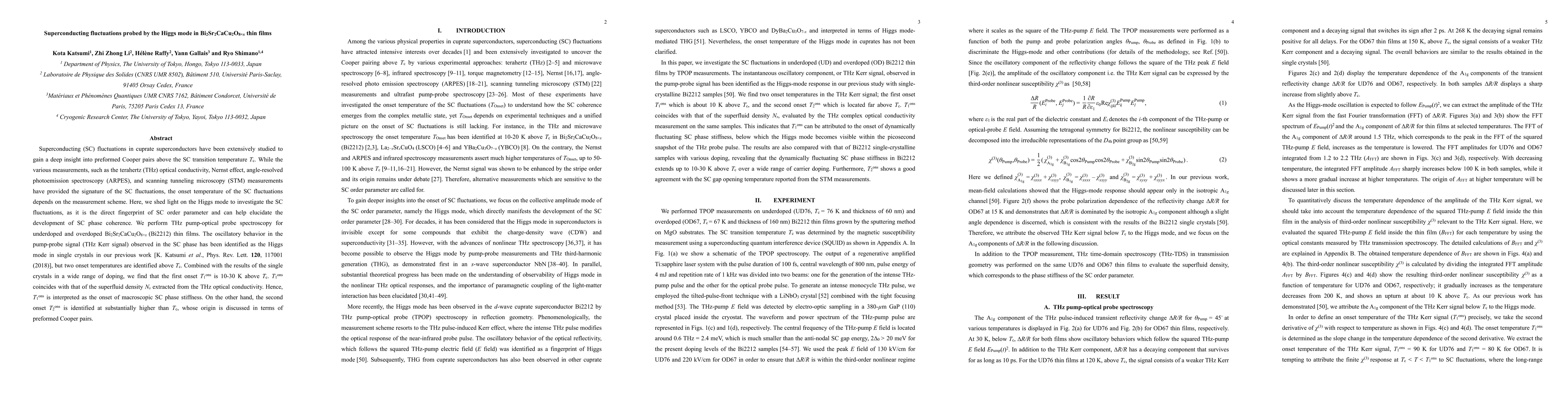 Researchers studied superconducting fluctuations in Bi2212 thin films using THz pump-optical probe spectroscopy, finding two onset temperatures above the critical temperature that correspond to macroscopic phase stiffness and preformed Cooper pairs.