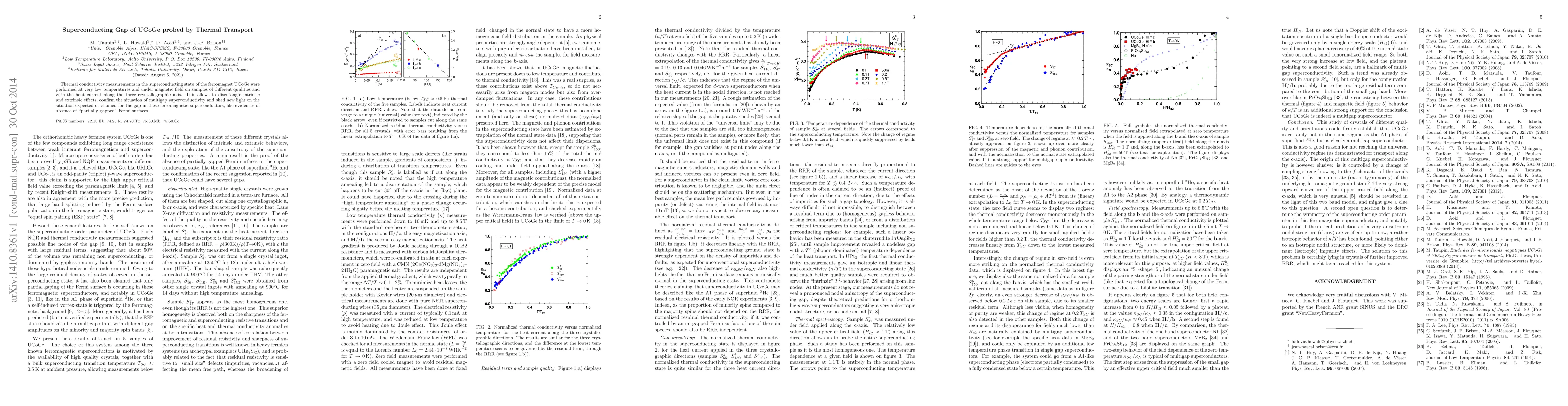 Thermal conductivity measurements in the superconducting state of the ferromagnet UCoGe were performed at very low temperatures and under magnetic field on samples of different qualities and with the heat current along the three crystallographic axis. This allows to disentangle intrinsic and extrinsic effects, confirm the situation of multigap superconductivity and shed new light on the situation expected or claimed for the gap in these ferromagnetic superconductors, like evidences of absence of "partially gapped" Fermi surfaces.
