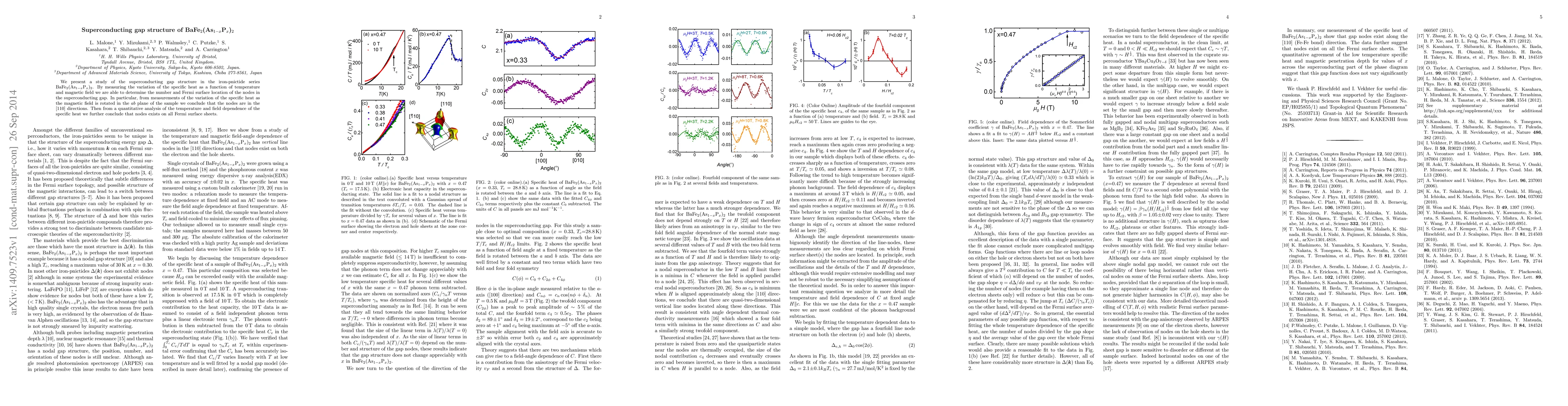 The research investigates the superconducting gap structure in BaFe2(As1-xPx)2. Using specific heat variation with temperature and magnetic field, the study identifies nodes in the superconducting gap along [110] directions on all Fermi surface sheets.