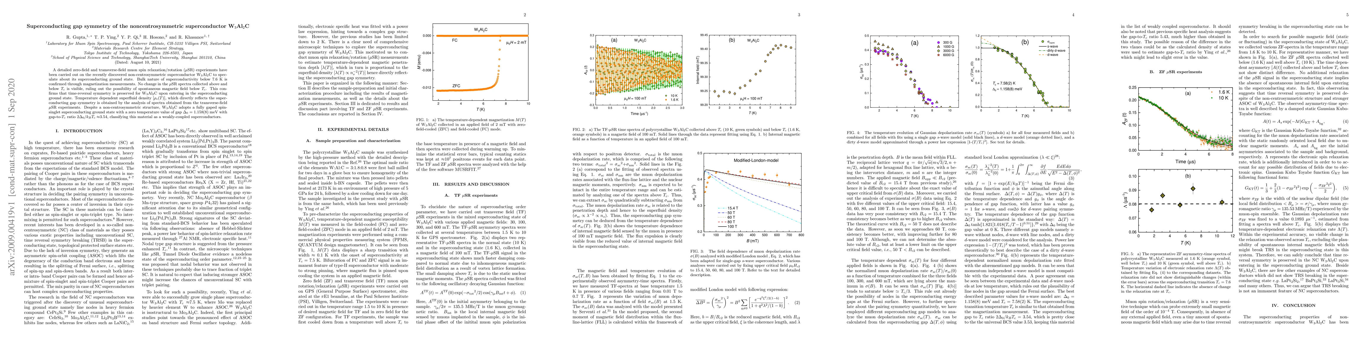 A detailed zero-field and transverse-field muon spin relaxation/rotation ($\mu$SR) experiemnts have been carried out on the recently discovered non-centrosymmetric superconductor W$_3$Al$_2$C to speculate about its superconducting ground state. Bulk nature of superconductivity below 7.6 K is confirmed through magnetization measurements. No change in the $\mu$SR spectra collected above and below $T_c$ is visible, ruling out the possibility of spontaneous magnetic field below $T_c$. This confirms that time-reversal symmetry is preserved for W$_3$Al$_2$C upon entering in the superconducting ground state. Temperature dependent superfluid density [$\rho_s(T)$], which directly reflects the superconducting gap symmetry is obtained by the analysis of spectra obtained from the transverse-field $\mu$SR experiments. Despite a non-centrosymmetric structure, W$_3$Al$_2$C adopts a fully gaped spin-singlet superconducting ground state with a zero temperature value of gap $\Delta_0$ = 1.158(8) meV with gap-to-$T_c$ ratio 2$\Delta_0/k_BT_c\approx$3.54, classifying this material as a weakly-coupled superconductors.