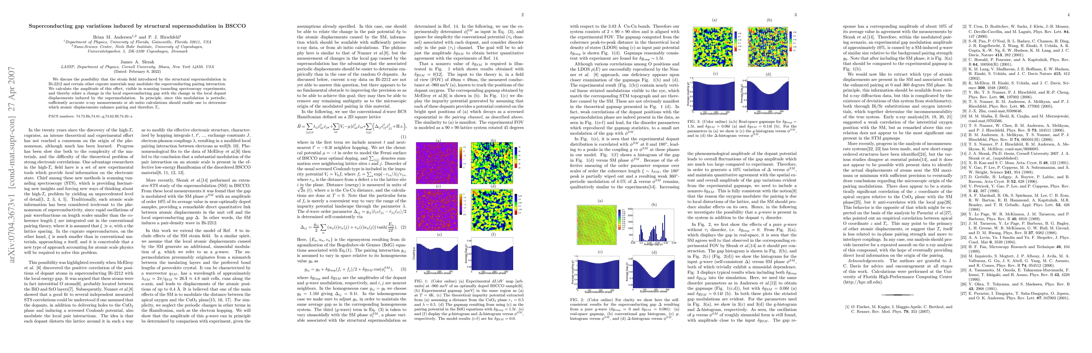 This paper investigates how structural supermodulation in BSCCO materials can modulate the superconducting pairing interaction through strain fields, and it calculates the effect's amplitude observable in scanning tunneling spectroscopy. The study aims to determine which atomic displacements enhance the superconducting transition temperature (T_c) via precise x-ray measurements or ab initio calculations.