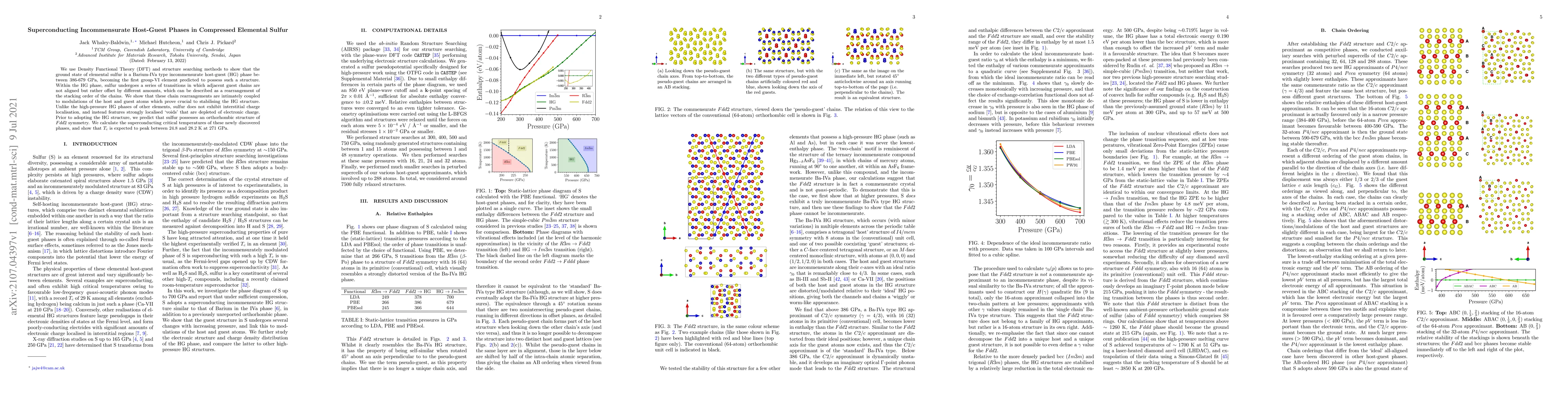 This research predicts that compressed elemental sulfur forms a Barium-IVa type incommensurate host-guest phase under high pressure, featuring unique chain rearrangements and localised voids. The study calculates a peak superconducting critical temperature of 24.8-28.2 K at 271 GPa.