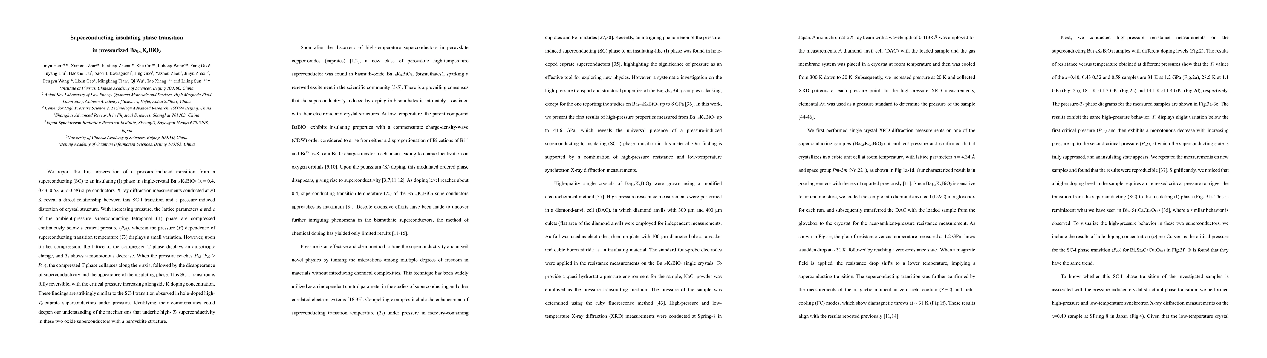 This study observes a pressure-induced quantum phase transition from superconducting to insulating states in Ba1-xKxBiO3 perovskite bismuth-oxides, linked to a valence change of Bi ions. The critical pressure for this transition increases with higher hole-doping concentration, suggesting a universal trend in high-temperature superconductors.