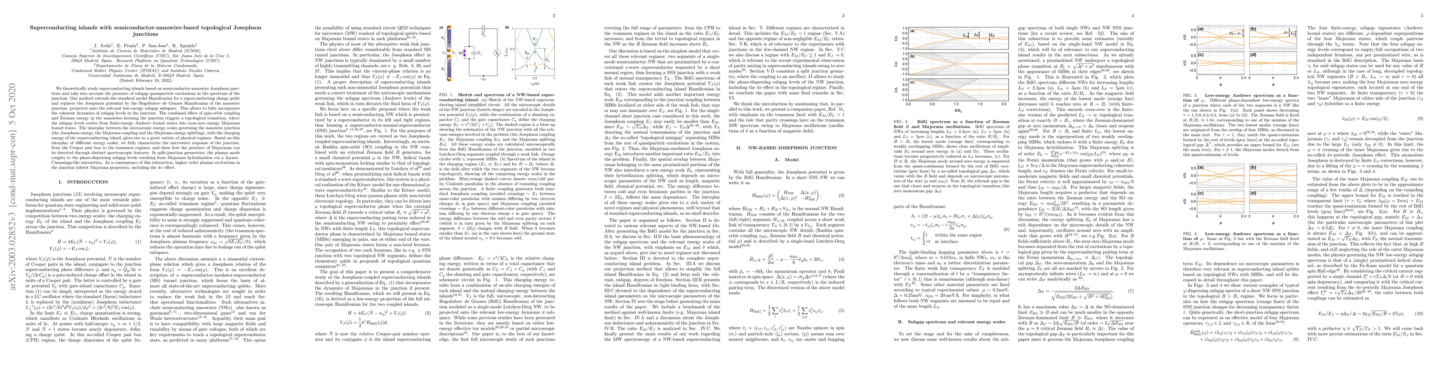 We theoretically study superconducting islands based on semiconductor-nanowire Josephson junctions and take into account the presence of subgap quasiparticle excitations in the spectrum of the junction. Our method extends the standard model Hamiltonian for a superconducting charge qubit and replaces the Josephson potential by the Bogoliubov--de Gennes Hamiltonian of the nanowire junction, projected onto the relevant low-energy subgap subspace. This allows to fully incorporate the coherent dynamics of subgap levels in the junction. The combined effect of spin-orbit coupling and Zeeman energy in the nanowires forming the junction triggers a topological transition, where the subgap levels evolve from finite-energy Andreev bound states into near-zero energy Majorana bound states. The interplay between the microscopic energy scales governing the nanowire junction (the Josephson energy, the Majorana coupling and the Majorana energy splitting), with the charging energy of the superconducting island, gives rise to a great variety of physical regimes. Based on this interplay of different energy scales, we fully characterize the microwave response of the junction, from the Cooper pair box to the transmon regimes, and show how the presence of Majoranas can be detected through distinct spectroscopic features. In split-junction geometries, the plasma mode couples to the phase-dispersing subgap levels resulting from Majorana hybridization via a Jaynes--Cummings-like interaction. As a consequence of this interaction, higher order plasma excitations in the junction inherit Majorana properties, including the $4\pi$ effect.