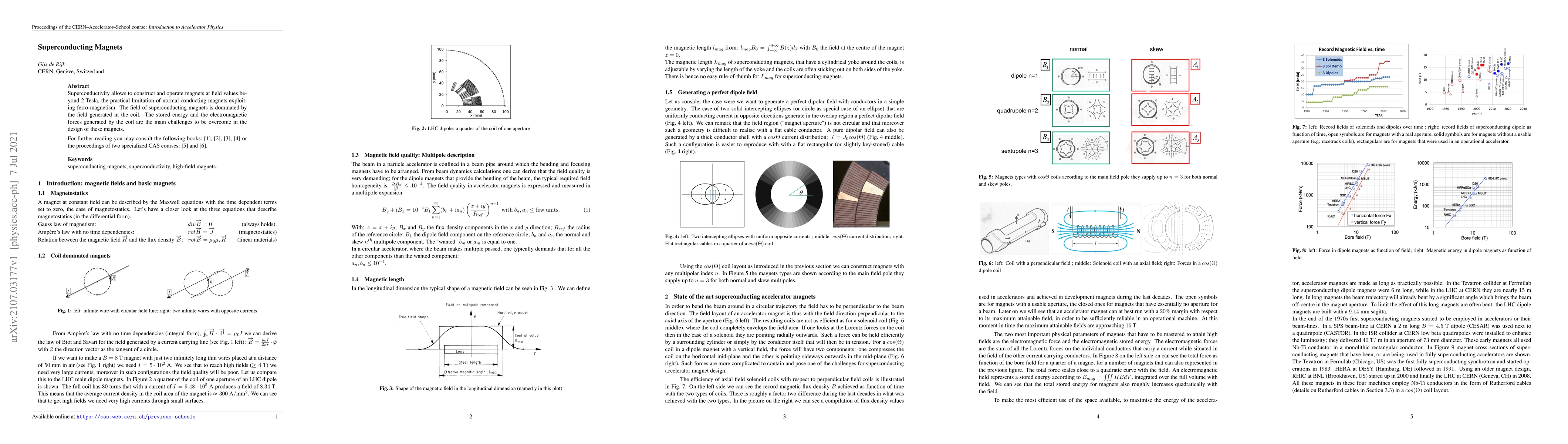 Summary: This paper explores the construction and operation of superconducting magnets capable of generating fields exceeding 2 Tesla, surpassing the limitations of normal-conducting magnets. The main challenges in their design include managing stored energy and electromagnetic forces from the coil.