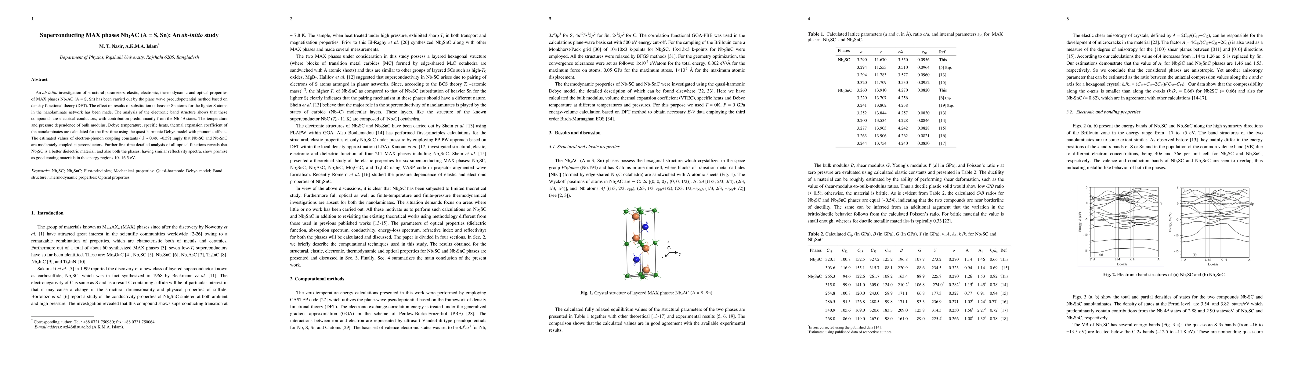 Researchers used first-principles calculations to study the properties of superconducting MAX phases Nb2AC (A = S, Sn), finding they have moderate electron-phonon coupling constants, making them promising materials for energy applications.