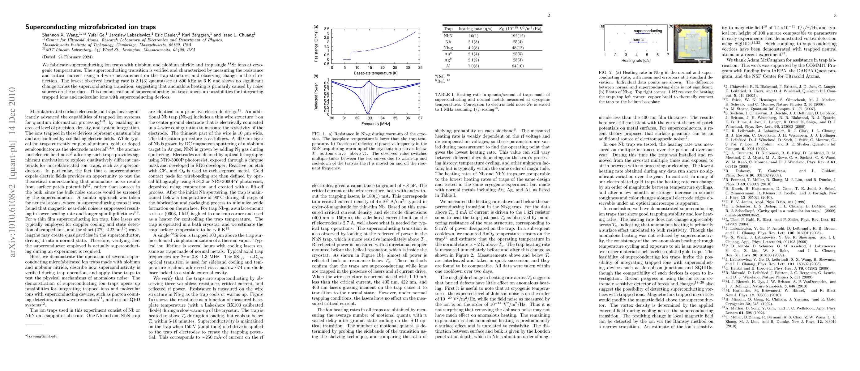 This research fabricates superconducting ion traps using niobium and niobium nitride, successfully trapping single 88Sr ions at cryogenic temperatures. The study verifies the superconducting transition and finds minimal anomalous heating, indicating surface noise sources dominate, thereby opening potential applications for integrating ions with superconducting devices.