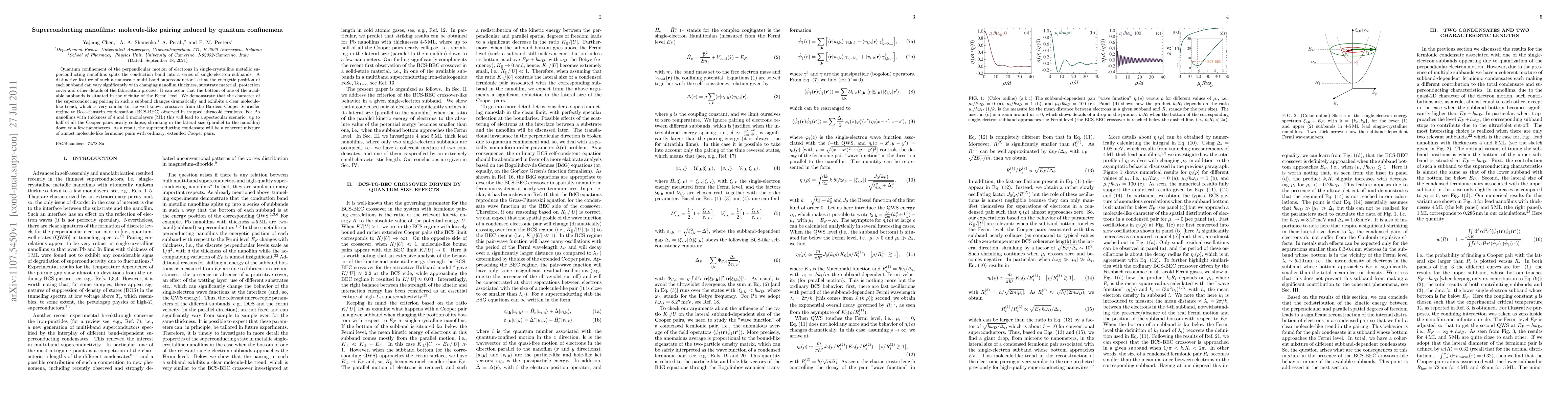 This paper investigates superconducting nanofilms where quantum confinement alters the electron subband structure, leading to a molecule-like superconducting pairing in certain subbands. For Pb nanofilms of 4 and 5 monolayers, nearly half of the Cooper pairs collapse to a few nanometers, resulting in a coherent mixture of molecule-like fermionic pairs and extended Cooper pairs.