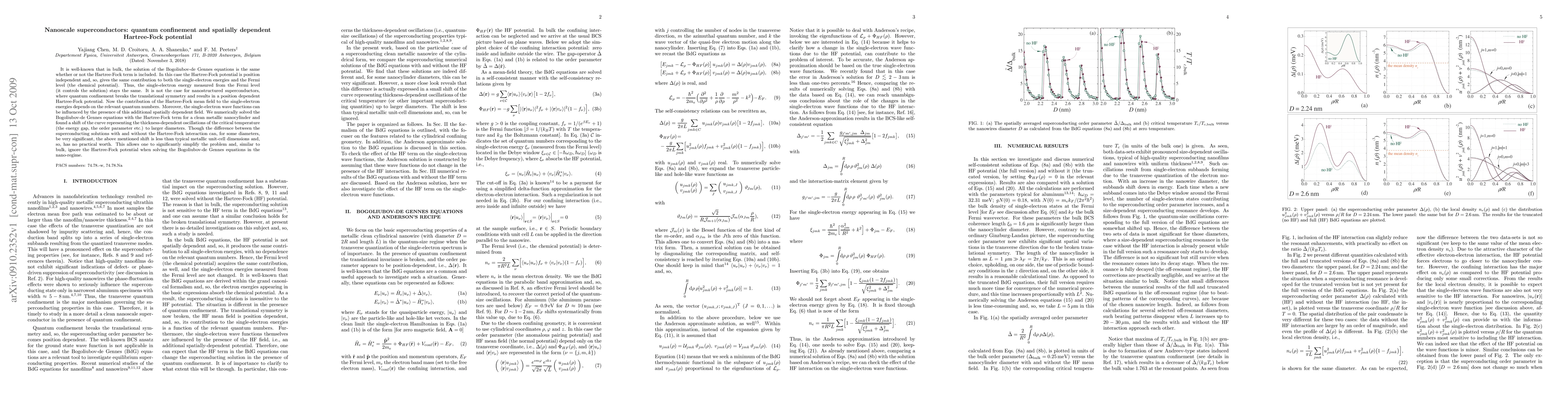 Researchers found that quantum confinement in superconducting nanowires leads to a position-dependent Hartree-Fock potential, affecting the critical temperature of superconductivity and causing it to increase with larger diameters.