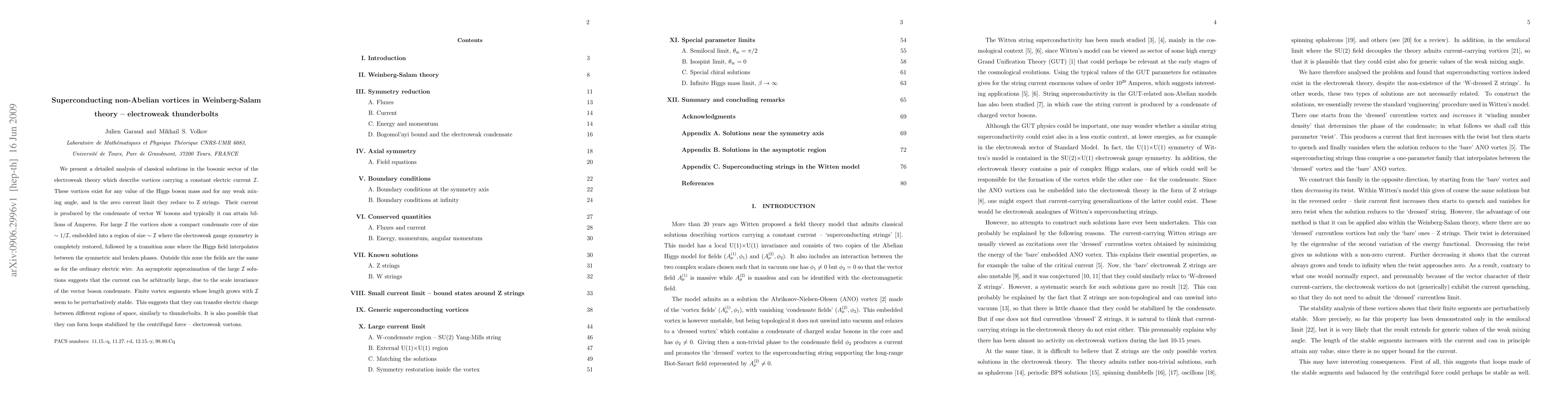 We present a detailed analysis of classical solutions in the bosonic sector of the electroweak theory which describe vortices carrying a constant electric current ${\cal I}$. These vortices exist for any value of the Higgs boson mass and for any weak mixing angle, and in the zero current limit they reduce to Z strings. Their current is produced by the condensate of vector W bosons and typically it can attain billions of Amperes. For large ${\cal I}$ the vortices show a compact condensate core of size $\sim 1/{\cal I}$, embedded into a region of size $\sim{\cal I}$ where the electroweak gauge symmetry is completely restored, followed by a transition zone where the Higgs field interpolates between the symmetric and broken phases. Outside this zone the fields are the same as for the ordinary electric wire. An asymptotic approximation of the large ${\cal I}$ solutions suggests that the current can be {arbitrarily} large, due to the scale invariance of the vector boson condensate. Finite vortex segments whose length grows with ${\cal I}$ seem to be perturbatively stable. This suggests that they can transfer electric charge between different regions of space, similarly to thunderbolts. It is also possible that they can form loops stabilized by the centrifugal force -- electroweak vortons.