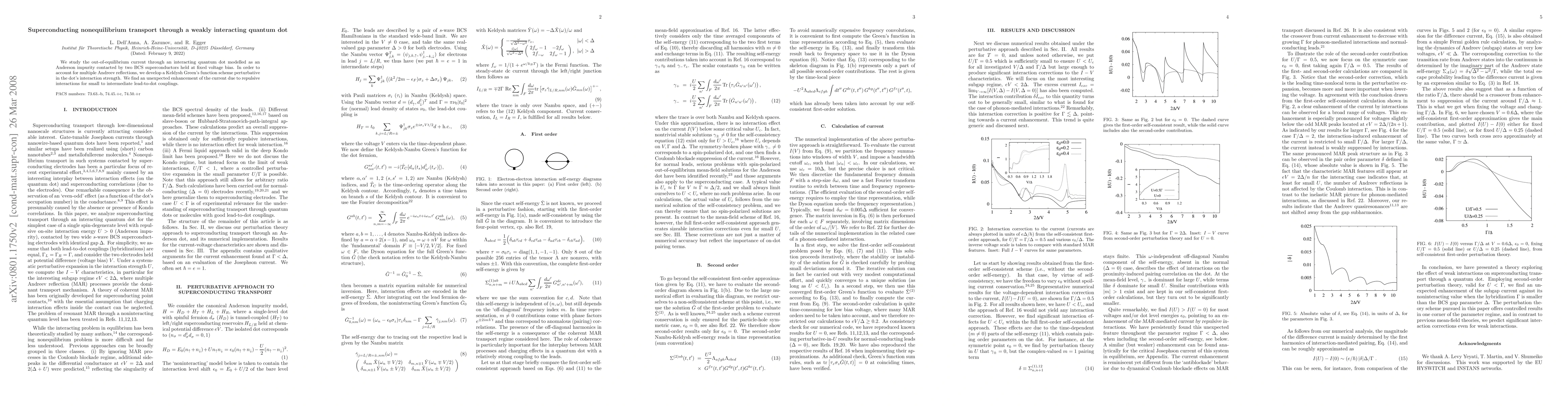 This paper investigates the non-equilibrium transport current through an interacting quantum dot connected to two superconductors, revealing an unexpected current enhancement due to repulsive interactions when the dot's coupling to the leads is weak, using a Keldysh Green's function approach.