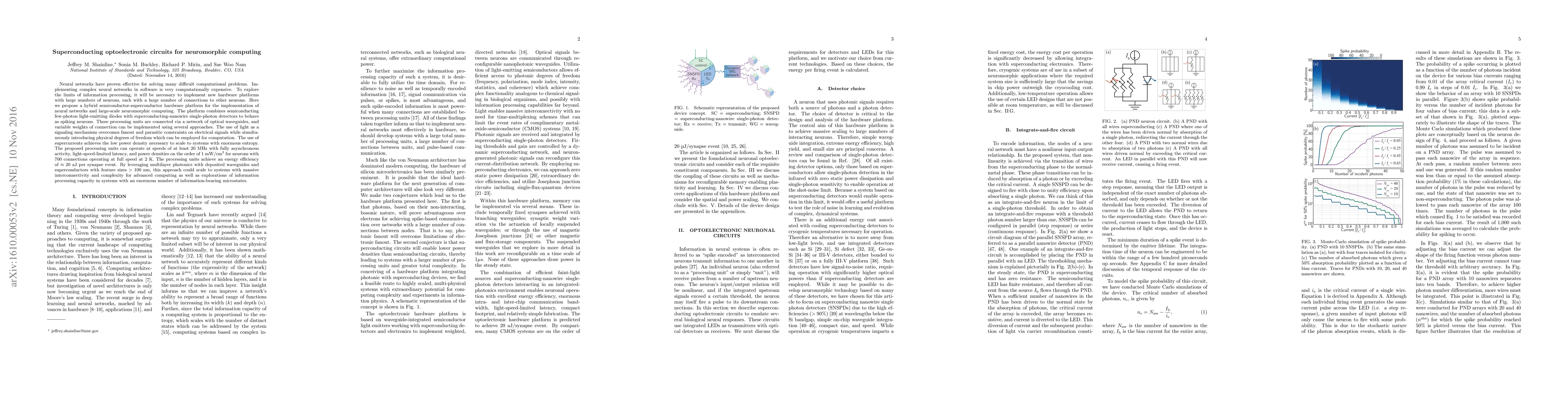 This paper proposes a hybrid semiconductor-superconductor platform for neuromorphic computing using light-based spiking neurons connected via optical waveguides, achieving high speed, low power, and energy efficiency, potentially scaling to large, complex systems. The approach leverages superconducting nanowires for low power density and photonics for overcoming electrical signal constraints.