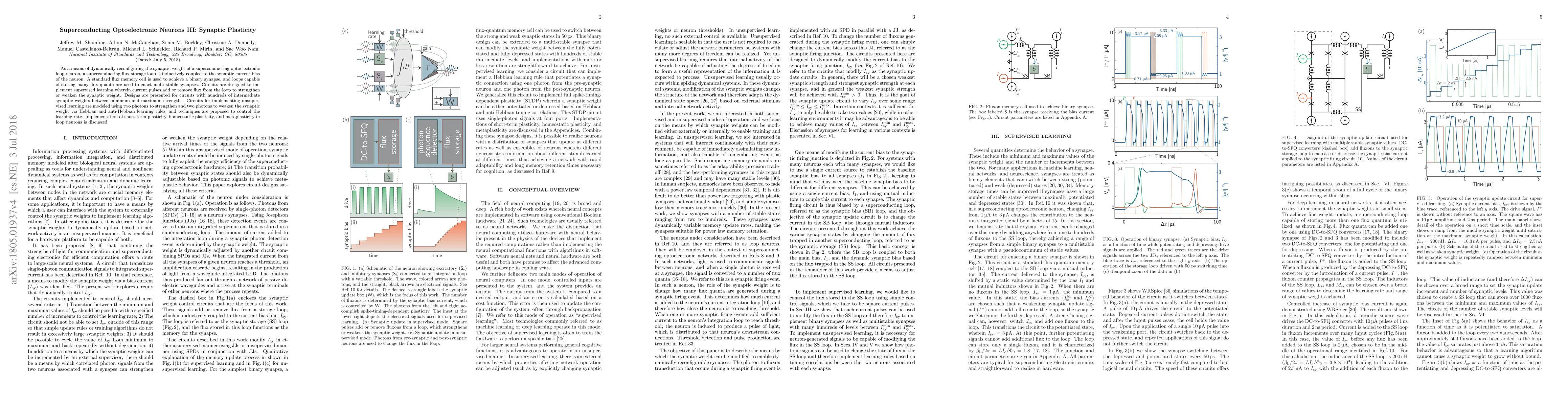 This paper explores superconducting optoelectronic neurons with synaptic plasticity, utilizing flux storage loops to dynamically adjust synaptic weights through supervised and unsupervised learning mechanisms. It proposes circuits capable of implementing various forms of plasticity and learning rules, including Hebbian and anti-Hebbian learning.
