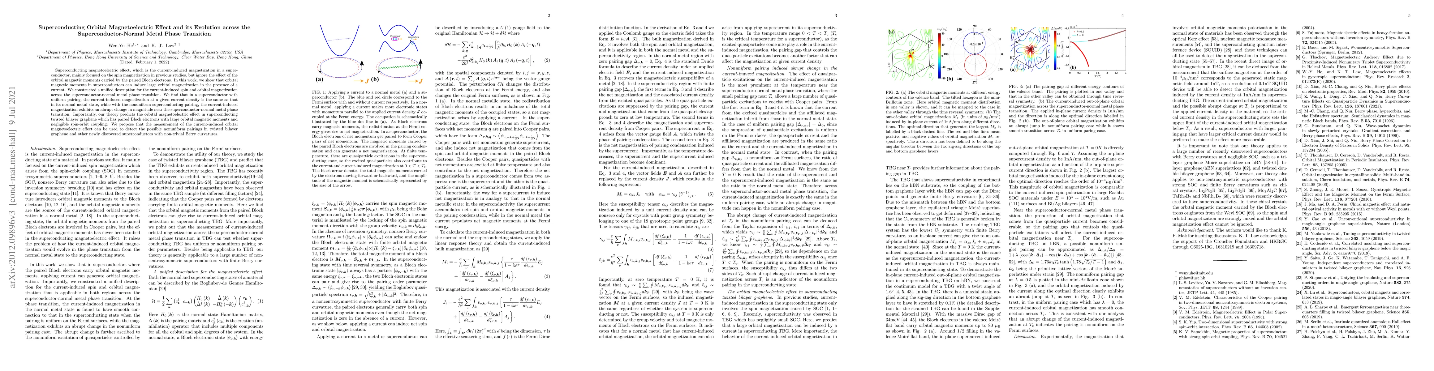 This paper investigates the superconducting orbital magnetoelectric effect, demonstrating that orbital magnetic moments in superconductors can induce significant orbital magnetization under current. It provides a unified theory for current-induced spin and orbital magnetization across the superconductivity-normal metal phase transition, revealing distinct behaviors in uniform and nonuniform superconducting pairings.