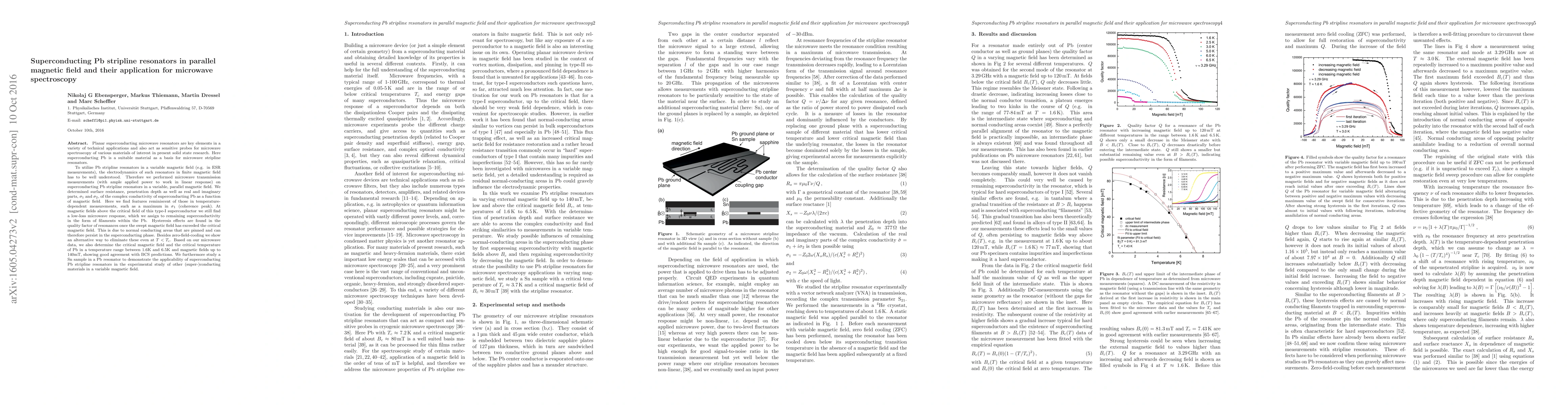 superconducting Pb stripline resonators in a variable, parallel magnetic field.