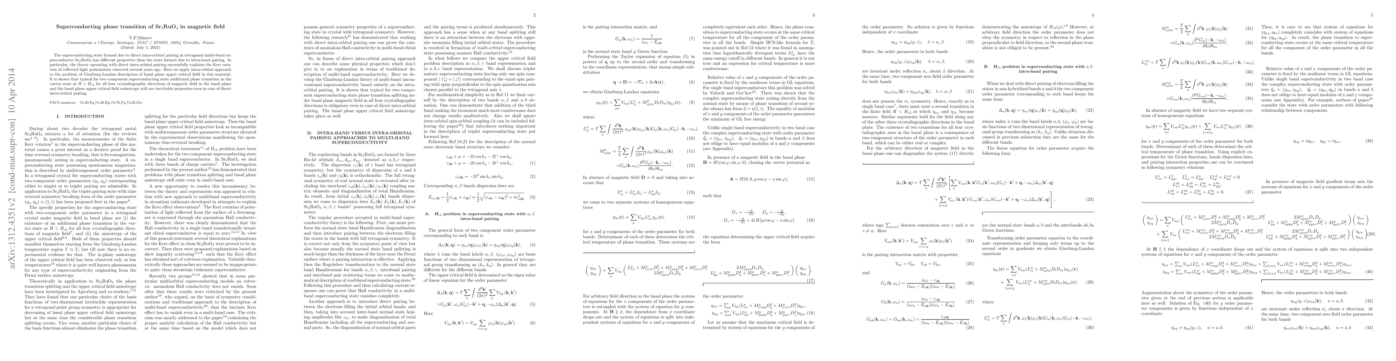 Researchers study Sr2RuO4 superconductor in magnetic fields, finding that direct intra-orbital pairing explains some phenomena but not others, leading to anisotropy in upper critical field properties.