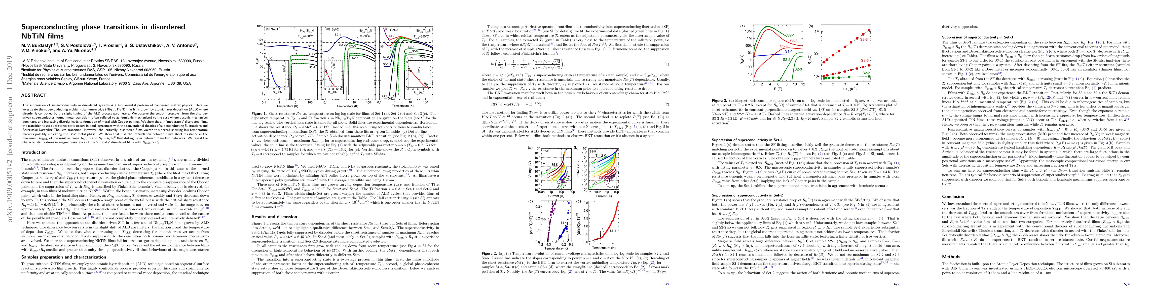The suppression of superconductivity in disordered systems is a fundamental problem of condensed matter physics. Here we investigate the superconducting niobium-titanium-nitride (Nb_{1-x}Ti_{x}N) thin films grown by atomic layer deposition (ALD) where disorder is controlled by the slight tuning of the ALD process parameters. We observe the smooth crossover from the disorder-driven superconductor-normal metal transition (often reffered to as fermionic mechanism) to the case where bosonic mechanism dominates and increasing disorder leads to formation of metal with Cooper pairing. We show that, in moderately disordered films, the transition to zero-resistance state occurs in a full agreement with the conventional theories of superconducting fluctuations and Berezinskii-Kosterlitz-Thouless transition. However, the critically disordered films violate this accord showing low-temperature features possibly indicating the Bose metal phase. We show that it is the interrelation between film's sheet resistance in the maximum, R_{max}, of the resistive curve R(T) and R_q = h/4e^2 that distinguishes between these two behaviors. We reveal the characteristic features in magnetoresistance of the critically disordered films with R_{max} > R_q