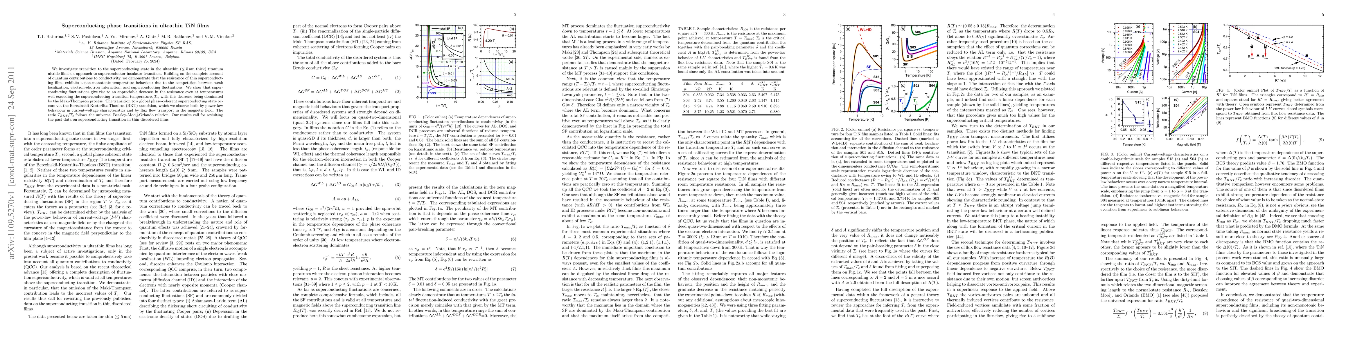 This paper investigates the superconducting transition in ultrathin TiN films, revealing a non-monotonic temperature behavior due to quantum effects and fluctuations. The transition to a coherent superconducting state occurs via a BKT transition, with the ratio T_{BKT}/T_c adhering to the Beasley-Mooij-Orlando relation.