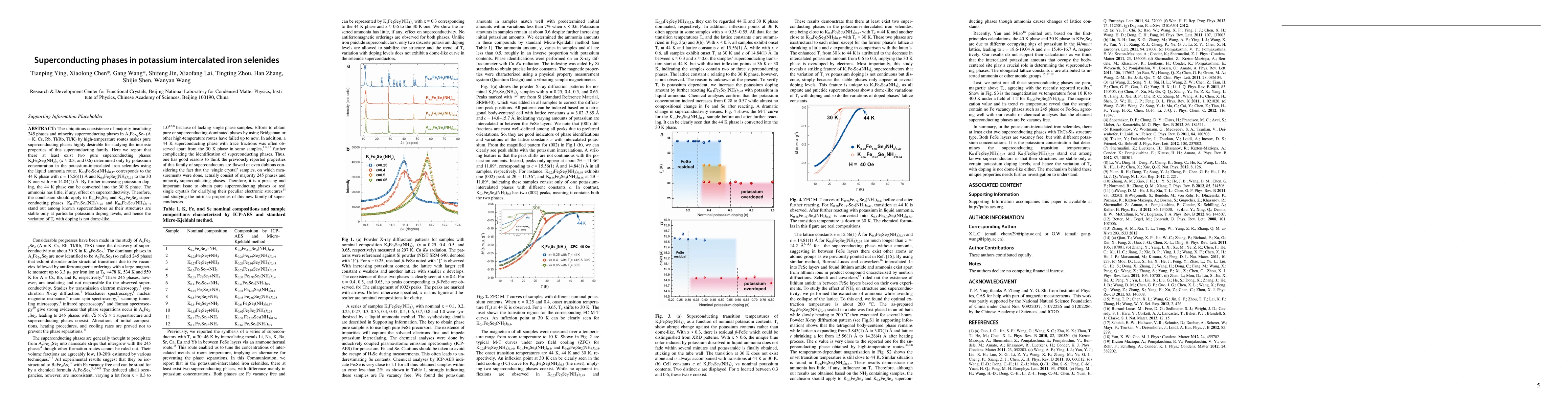 This research identifies two pure superconducting phases in potassium-intercalated iron selenides, K0.3Fe2Se2(NH3)0.47 and K0.6Fe2Se2(NH3)0.37, distinguished by distinct potassium concentrations and critical temperatures of 44 K and 30 K, respectively. The study reveals that NH3 has minimal impact on superconductivity, and the stability of these phases is contingent on specific potassium doping levels.