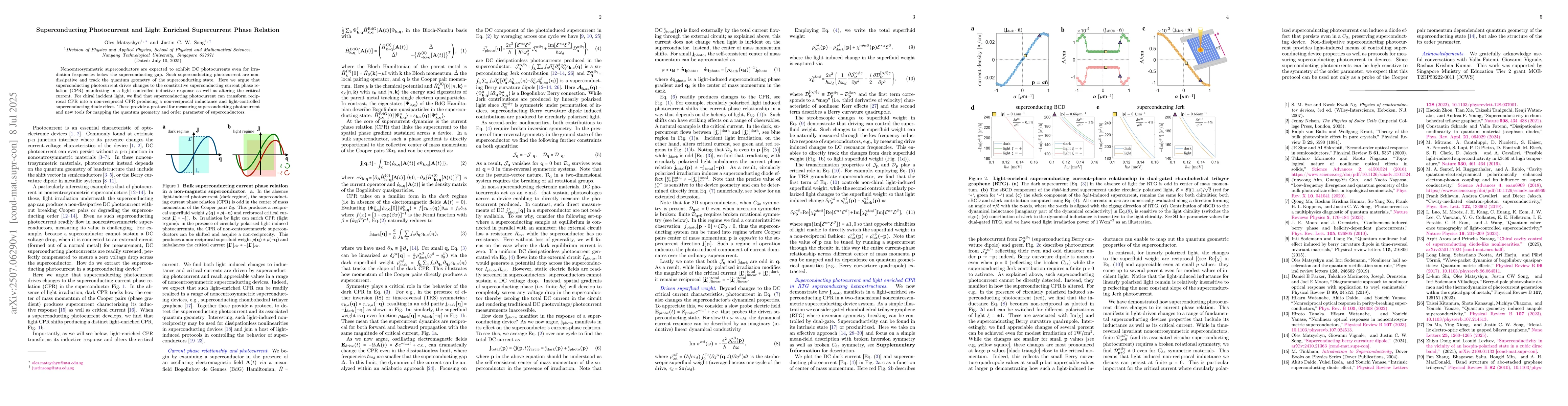 Noncentrosymmetric superconductors are expected to exhibit DC photocurrents even for irradiation frequencies below the superconducting gap. Such superconducting photocurrent are non-dissipative and track the quantum geometry of the superconducting state. Here we argue that superconducting photocurrent drives changes to the constitutive superconducting current phase relation (CPR) manifesting in a light controlled inductive response as well as altering the critical current. For chiral incident light, we find that superconducting photocurrent can transform reciprocal CPR into a non-reciprocal CPR producing a non-reciprocal inductance and light-controlled superconducting diode effect. These provide a protocol for measuring superconducting photocurrent and new tools for mapping the quantum geometry and order parameter of superconductors.