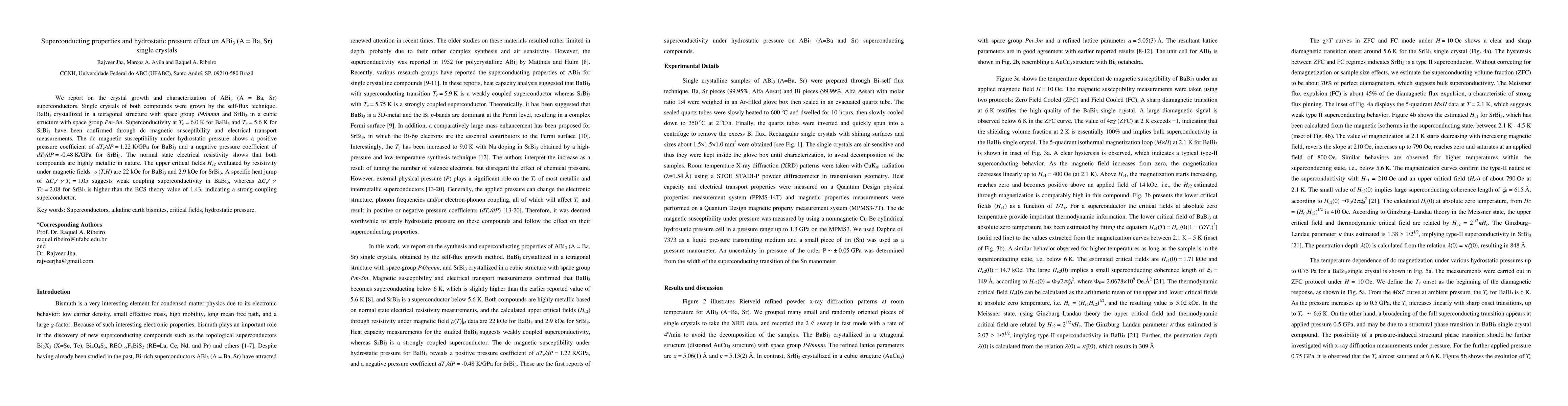 This study details the growth and characterization of ABi3 (A=Ba,Sr) superconductors. BaBi3 and SrBi3 exhibit superconductivity at 6.0 K and 5.6 K respectively, confirmed by magnetic and electrical measurements. Hydrostatic pressure impacts Tc differently, increasing for BaBi3 and decreasing for SrBi3. The compounds show high metallic conductivity, with upper critical fields of 22 kOe and 2.9 kOe for BaBi3 and SrBi3 respectively. Specific heat data suggests BaBi3 has weak-coupling superconductivity, while SrBi3 shows strong-coupling characteristics.
