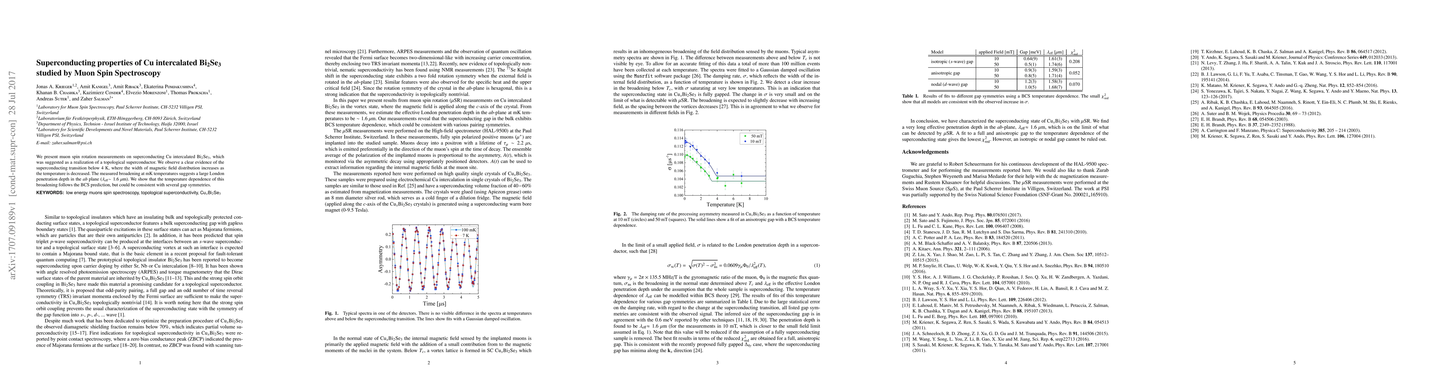 This study uses muon spin rotation to investigate superconducting Cu intercalated Bi$_2$Se$_3$, revealing a transition below 4 K and a large London penetration depth in the $ab$ plane, indicating potential topological superconductivity with gap symmetries consistent with BCS predictions.
