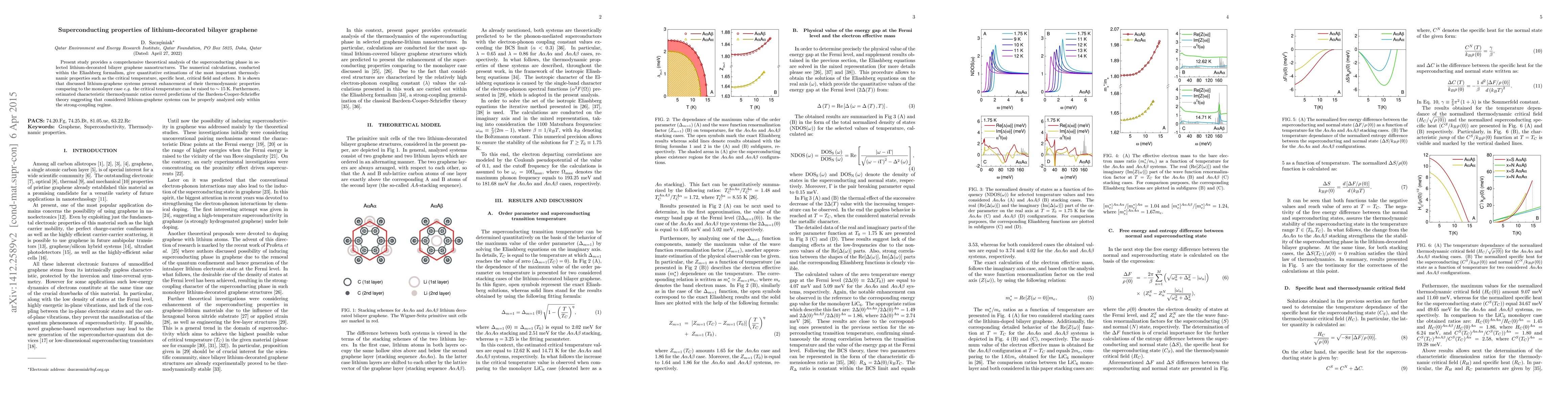 This study theoretically investigates the superconducting properties of lithium-decorated bilayer graphene, finding enhanced thermodynamic properties including a critical temperature up to 15 K, exceeding predictions of conventional BCS theory and suggesting a strong-coupling regime.