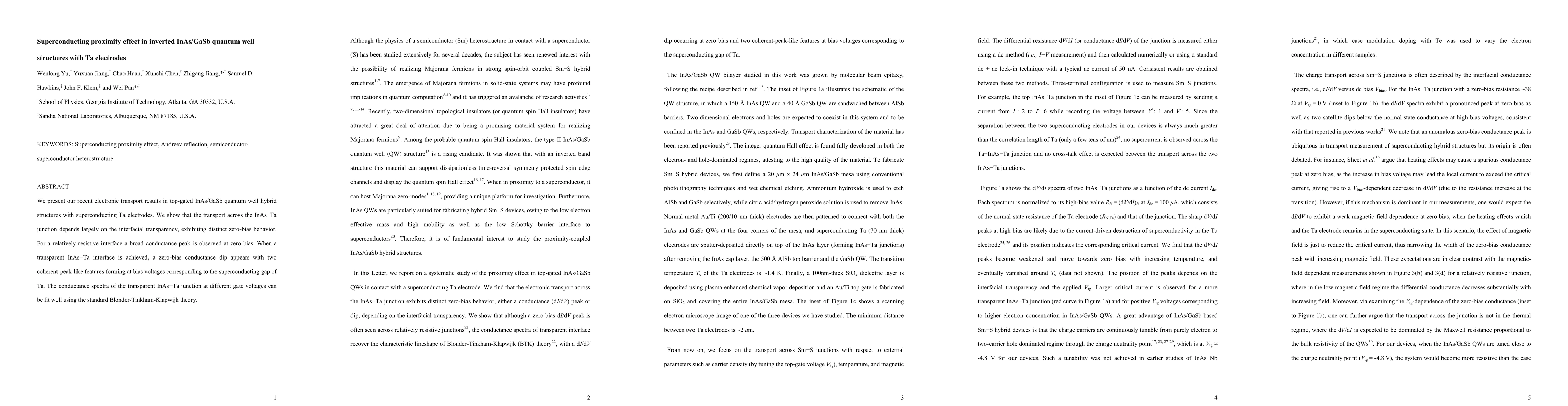This paper investigates electronic transport in InAs/GaSb quantum well structures with Ta superconducting electrodes, revealing that interface transparency significantly affects transport behavior. Transparent interfaces show zero-bias conductance dips and coherent peaks corresponding to Ta's superconducting gap, while resistive interfaces exhibit broad conductance peaks at zero bias.