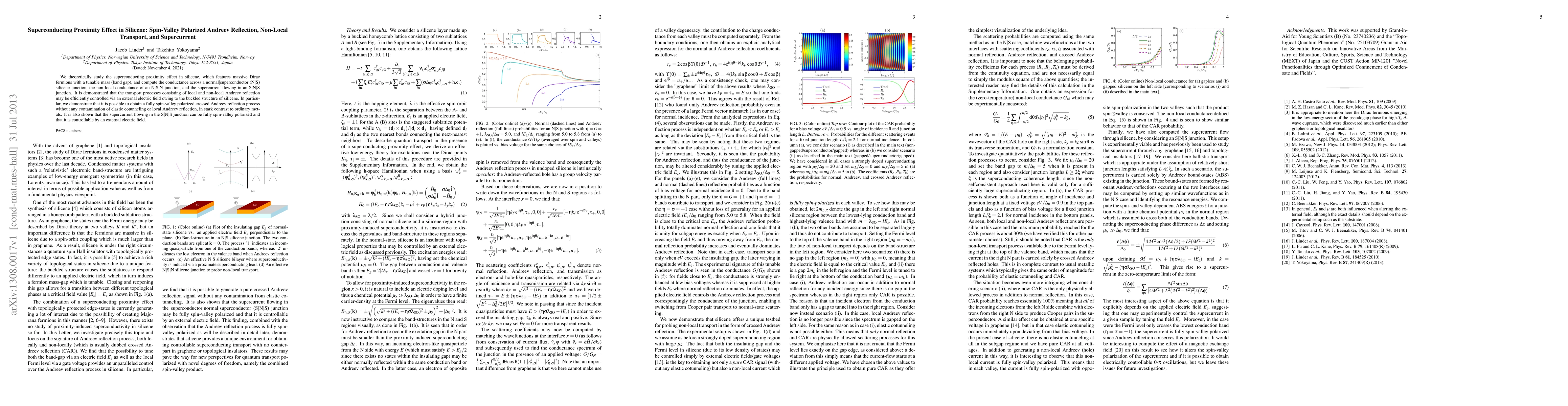 This paper theoretically investigates the superconducting proximity effect in silicene, revealing efficient control of local and non-local Andreev reflection via external electric fields. It demonstrates fully spin-valley polarized Andreev reflection and supercurrent in S/N/S junctions, showcasing unique properties of silicene's massive Dirac fermions.