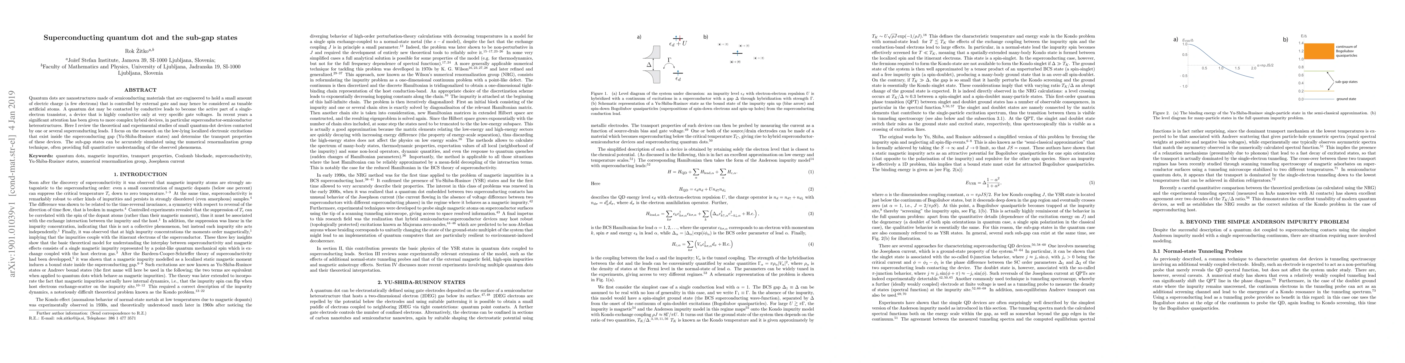 Quantum dots are nanostructures made of semiconducting materials that are engineered to hold a small amount of electric charge (a few electrons) that is controlled by external gate and may hence be considered as tunable artificial atoms. A quantum dot may be contacted by conductive leads to become the active part of a single-electron transistor, a device that is highly conductive only at very specific gate voltages. In recent years a significant attention has been given to more complex hybrid devices, in particular superconductor-semiconductor heterostructures. Here I review the theoretical and experimental studies of small quantum-dot devices contacted by one or several superconducting leads. I focus on the research on the low-lying localized electronic excitations that exist inside the superconducting gap (Yu-Shiba-Rusinov states) and determine the transport properties of these devices. The sub-gap states can be accurately simulated using the numerical renormalization group technique, often providing full quantitative understanding of the observed phenomena.