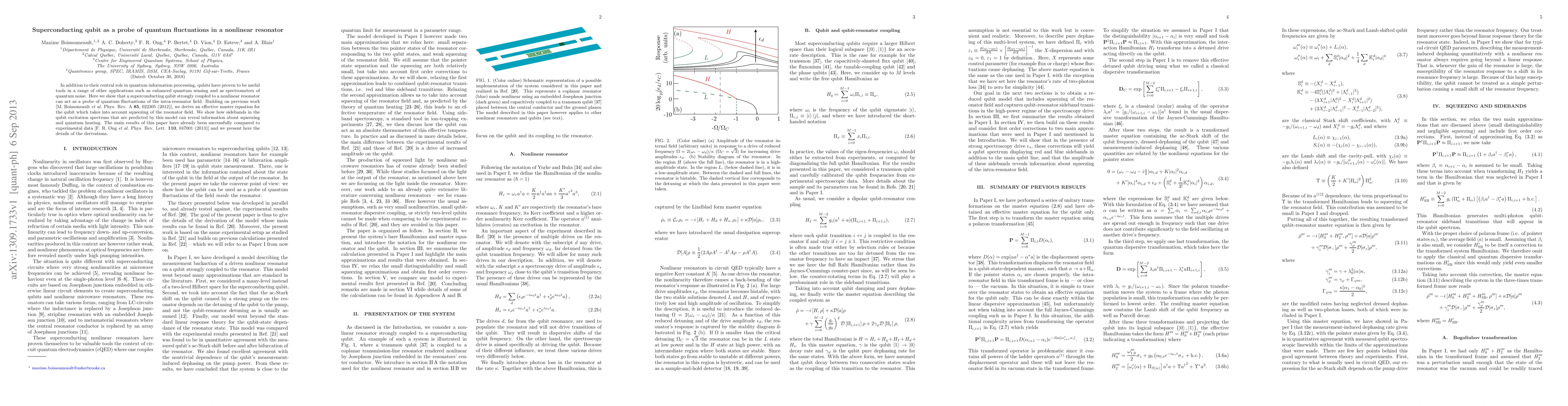This paper explores the use of a superconducting qubit coupled to a nonlinear resonator to probe quantum fluctuations, deriving an effective master equation that accounts for resonator field squeezing. The study shows how sidebands in the qubit's excitation spectrum reveal details about squeezing and quantum heating, with results validated by experimental data.