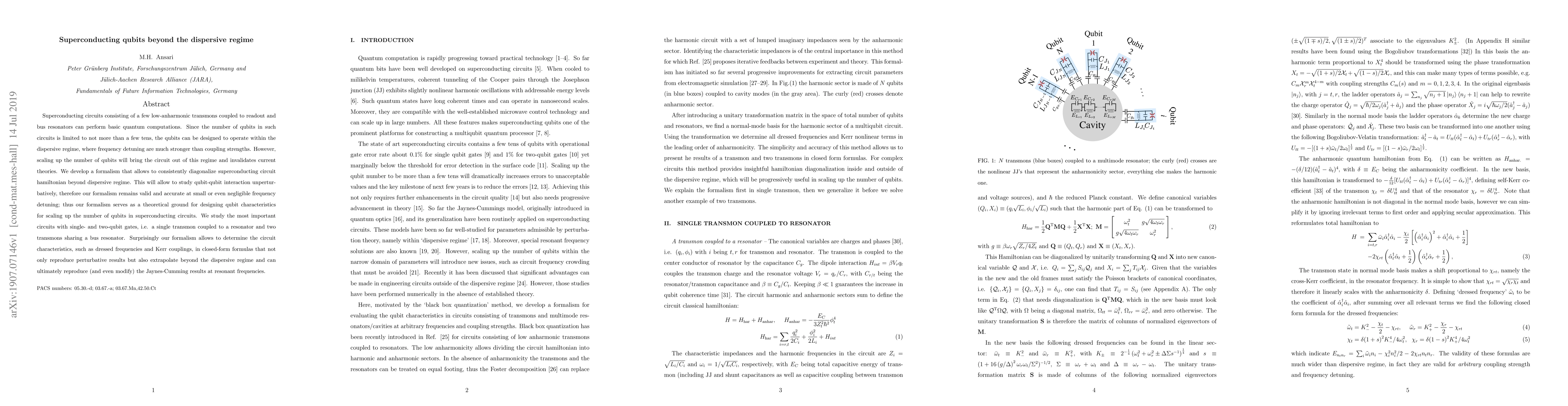 Superconducting circuits consisting of a few low-anharmonic transmons coupled to readout and bus resonators can perform basic quantum computations. Since the number of qubits in such circuits is limited to not more than a few tens, the qubits can be designed to operate within the dispersive regime, where frequency detuning are much stronger than coupling strengths. However, scaling up the number of qubits will bring the circuit out of this regime and invalidates current theories. We develop a formalism that allows to consistently diagonalize superconducting circuit hamiltonian beyond dispersive regime. This will allow to study qubit-qubit interaction unperturbatively, therefore our formalism remains valid and accurate at small or even negligible frequency detuning; thus our formalism serves as a theoretical ground for designing qubit characteristics for scaling up the number of qubits in superconducting circuits. We study the most important circuits with single- and two-qubit gates, i.e. a single transmon coupled to a resonator and two transmons sharing a bus resonator. Surprisingly our formalism allows to determine the circuit characteristics, such as dressed frequencies and Kerr couplings, in closed-form formulas that not only reproduce perturbative results but also extrapolate beyond the dispersive regime and can ultimately reproduce (and even modify) the Jaynes-Cumming results at resonant frequencies.