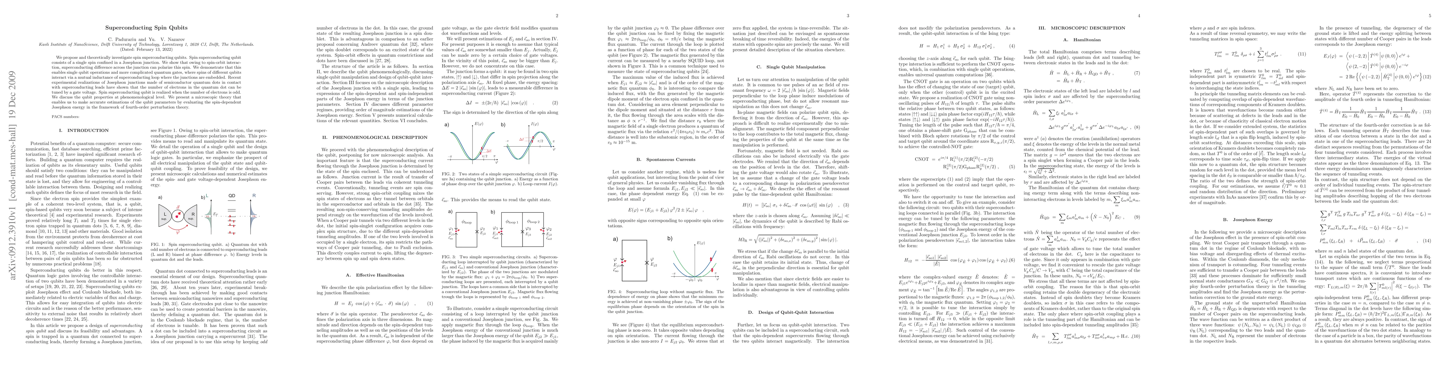 This paper proposes spin superconducting qubits, utilizing a single spin in a Josephson junction, and demonstrates how spin-orbit interaction can polarize the spin, enabling single qubit operations and quantum gates. The theoretical framework includes a microscopic theory to accurately estimate qubit parameters via fourth-order perturbation theory.