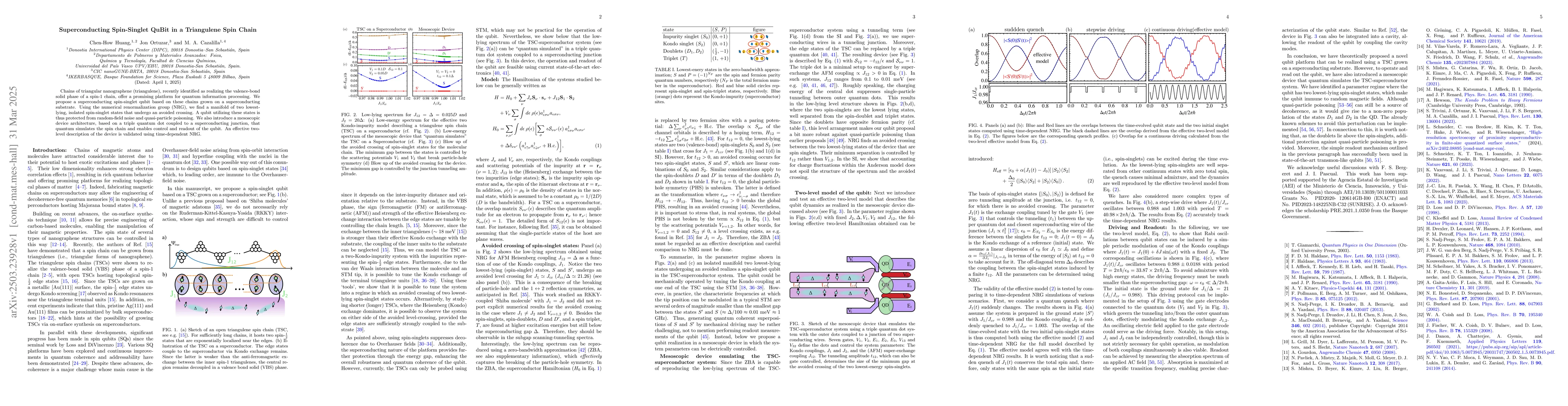 The paper introduces a novel superconducting spin-singlet qubit based on triangulene spin chains and a corresponding triple quantum dot device architecture for quantum simulation and control.