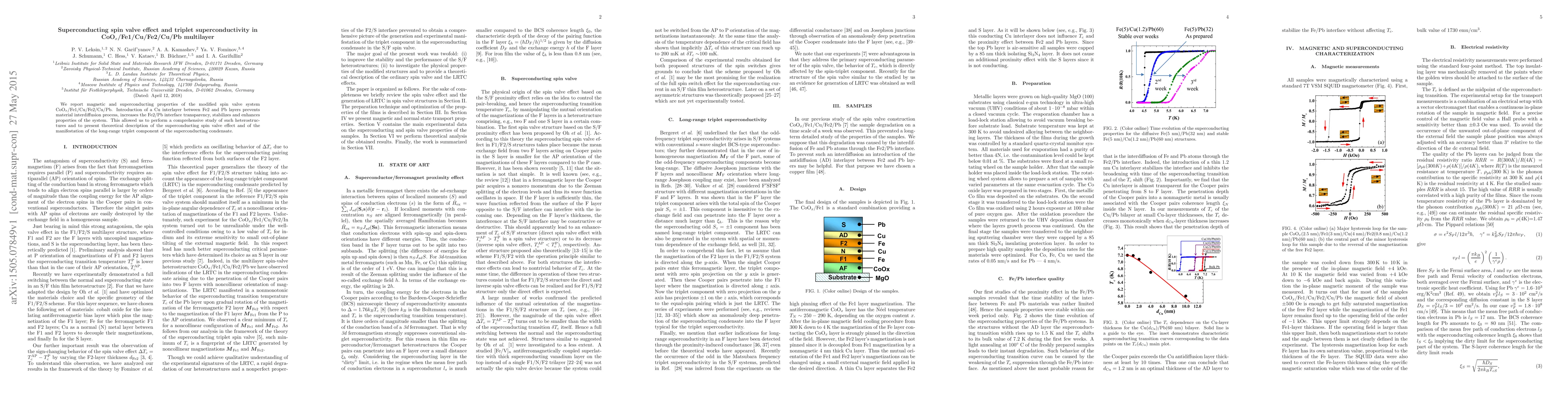 We report magnetic and superconducting properties of the modified spin valve system CoOx/Fe1/Cu/Fe2/Cu/Pb. Introduction of a Cu interlayer between Fe2 and Pb layers prevents material interdiffusion process, increases the Fe2/Pb interface transparency, stabilizes and enhances properties of the system. This allowed us to perform a comprehensive study of such heterostructures and to present theoretical description of the superconducting spin valve effect and of the manifestation of the long-range triplet component of the superconducting condensate.