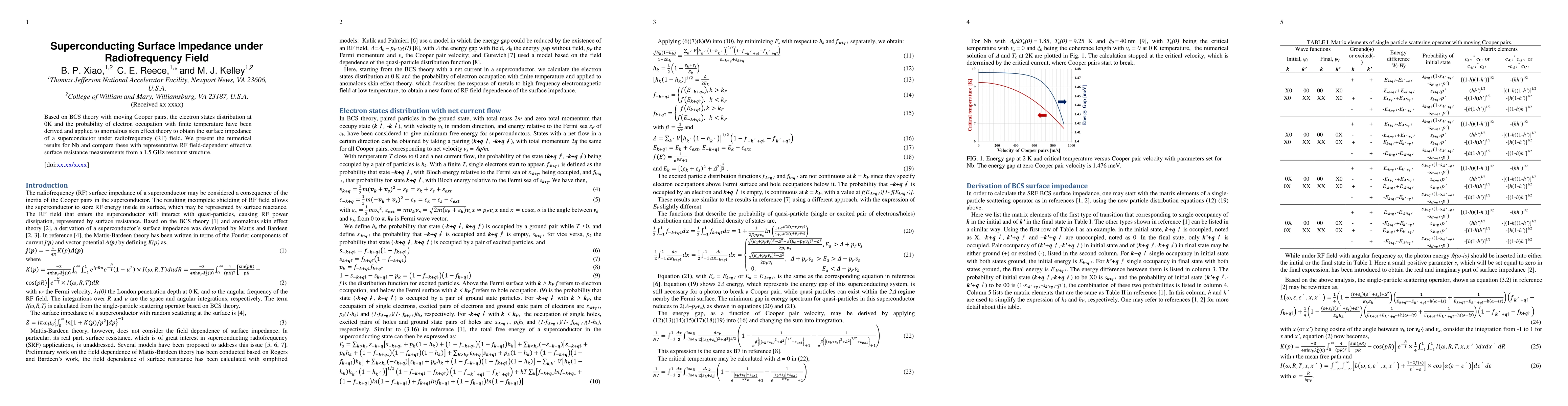 Based on BCS theory with moving Cooper pairs, the electron states distribution at 0K and the probability of electron occupation with finite temperature have been derived and applied to anomalous skin effect theory to obtain the surface impedance of a superconductor under radiofrequency (RF) field. We present the numerical results for Nb and compare these with representative RF field-dependent effective surface resistance measurements from a 1.5 GHz resonant structure.