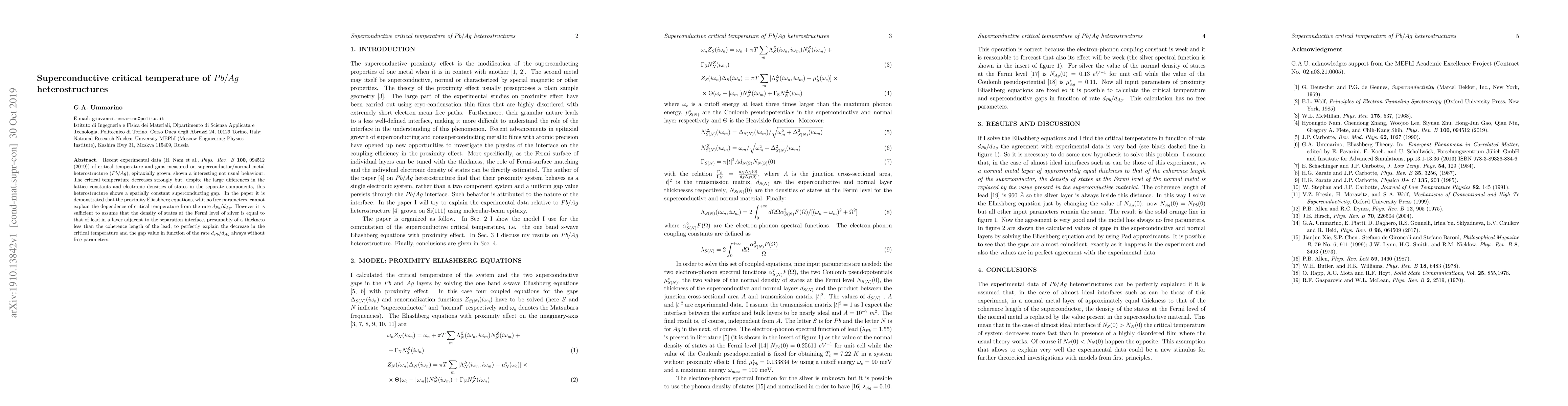Recent experimental data (H. Nam et al., Phys. Rev. B 100, 094512 (2019)) of critical temperature and gaps measured on superconductor/normal metal heterostructure Pb/Ag, epitaxially grown, shown a interesting not usual behaviour. The critical temperature decreases strongly but, despite the large differences in the lattice constants and electronic densities of states in the separate components, this heterostructure shows a spatially constant superconducting gap. In the paper it is demonstrated that the proximity Eliashberg equations, whit no free parameters, cannot explain the dependence of critical temperature from the rate $d_{Pb}/d_{Ag}$. However it is sufficient to assume that the density of states at the Fermi level of silver is equal to that of lead in a layer adjacent to the separation interface, presumably of a thickness less than the coherence length of the lead, to perfectly explain the decrease in the critical temperature and the gap value in function of the rate $d_{Pb}/d_{Ag}$ always without free parameters.