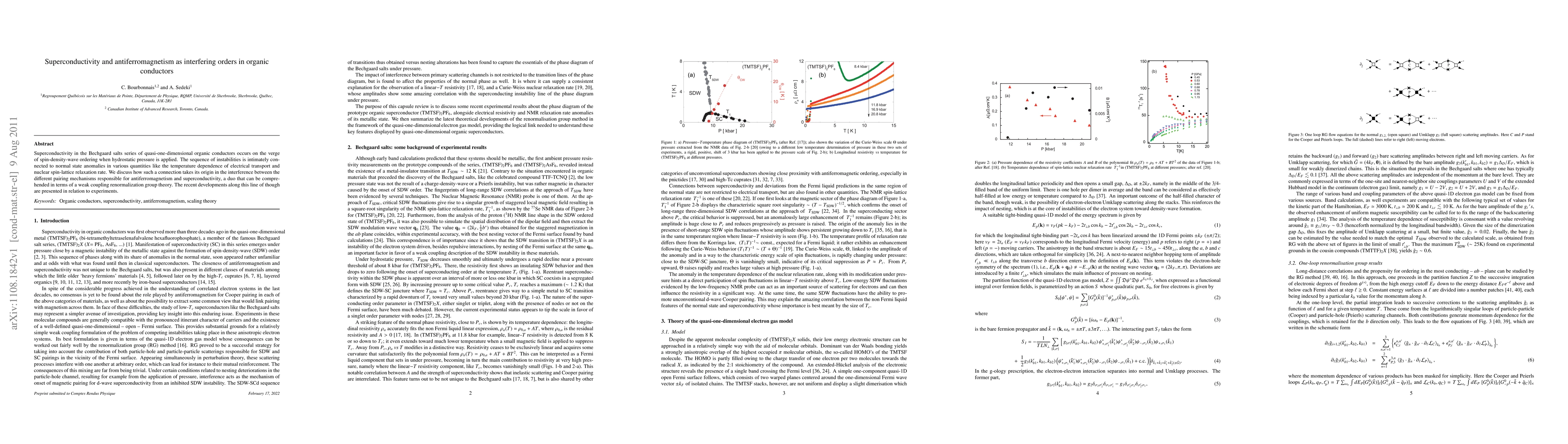 Superconductivity in the Bechgaard salts series of quasi-one-dimensional organic conductors occurs on the verge of spin-density-wave ordering when hydrostatic pressure is applied. The sequence of instabilities is intimately connected to normal state anomalies in various quantities like the temperature dependence of electrical transport and nuclear spin-lattice relaxation rate. We discuss how such a connection takes its origin in the interference between the different pairing mechanisms responsible for antiferromagnetism and superconductivity, a duo that can be comprehended in terms of a weak coupling renormalization group theory. The recent developments along this line of though are presented in relation to experiments.