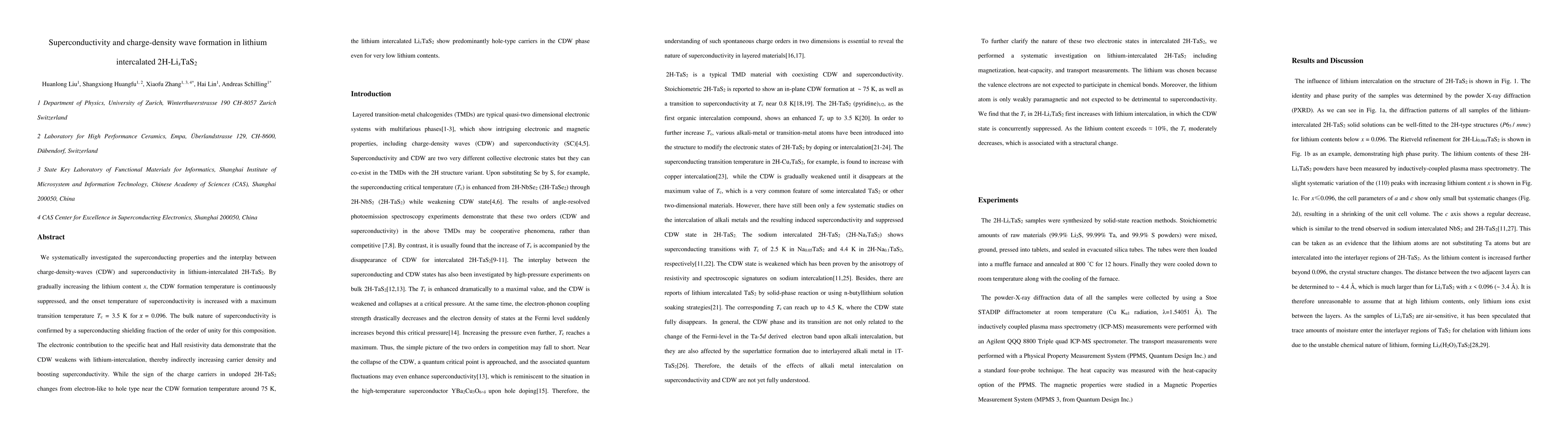 This study investigates the interplay between charge-density-wave formation and superconductivity in lithium-intercalated 2H-LixTaS2, finding that increased lithium content suppresses CDW formation while enhancing superconductivity up to a maximum Tc of 3.5 K, with predominantly hole-type carriers in the CDW phase.